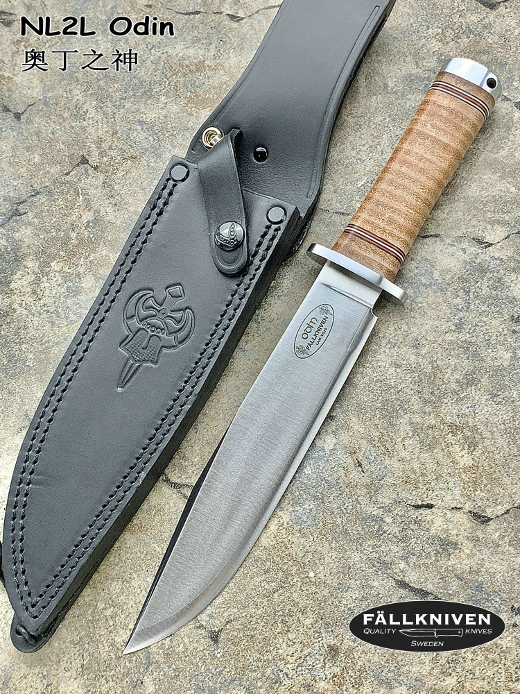 FallKniven NL2L奥丁之神:挪威神话中地位最高的神。非常的强壮,精美和舒适。奥丁之神夹钢大搏伊刀采用的是VG10三层夹钢,比冷钢公司的三美夹钢提供了韧性更强的刀被和更坚固锋利的刀刃,可以说是目前夹钢中最锋利的刀具!