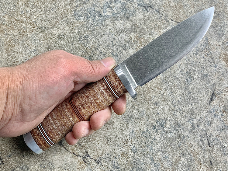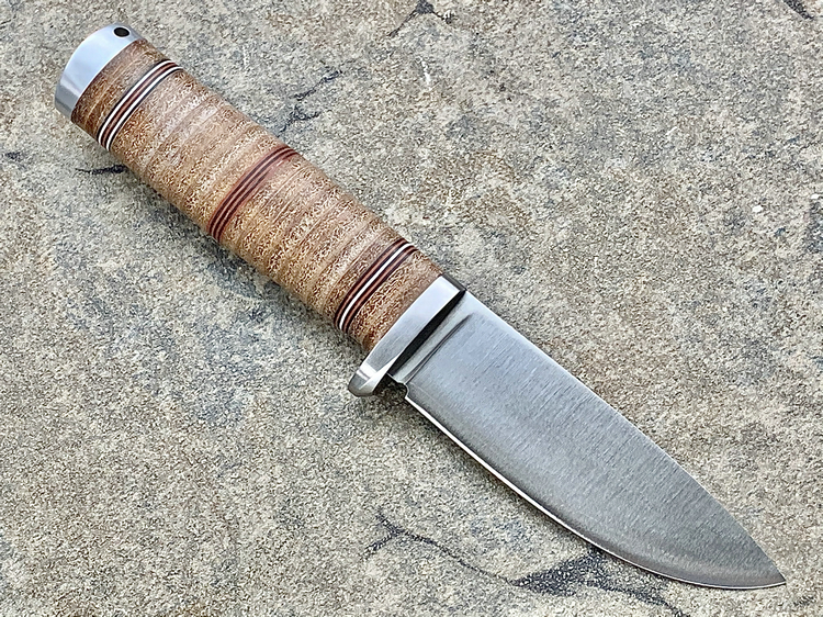 在挪威神话中,Idun是生育女神,掌管苹果,为诸神提供永恒的青春。对许多人来说,她也是爱和重生的象征。与之前北极光系列的刀型不同,NL5的外形稍圆一些,也比较柔和,因此,这把刀非常适合打猎。皮柄笔直、轻轻填充的握把可以完全控制VG10核心夹钢的强力刀片,并使该刀像经验丰富的猎人手掌中的有效工具一样具有吸引力。