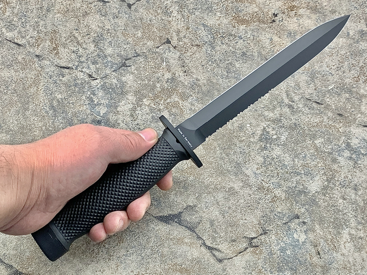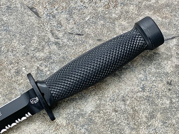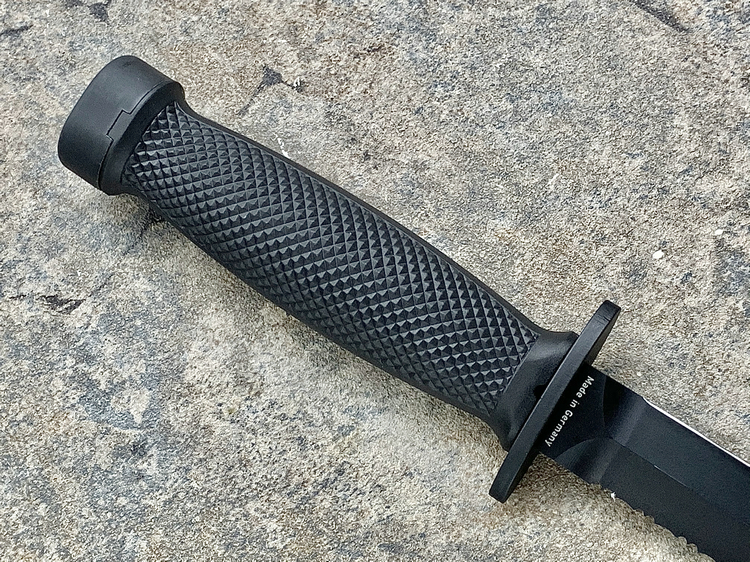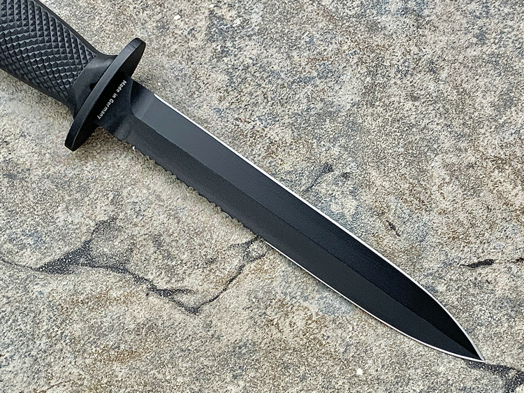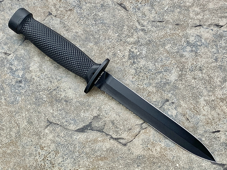 Klassischer黑剑经典指挥刀,为了增加韧性精选55Si7钢材,性能强于其它品牌的同类产品,高性能尤其体现在作战中,侦查部队的半齿刃用于切割顽固材料。结构优美的手柄由玻璃纤维制作。