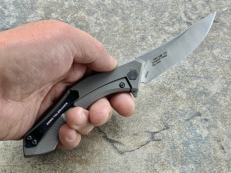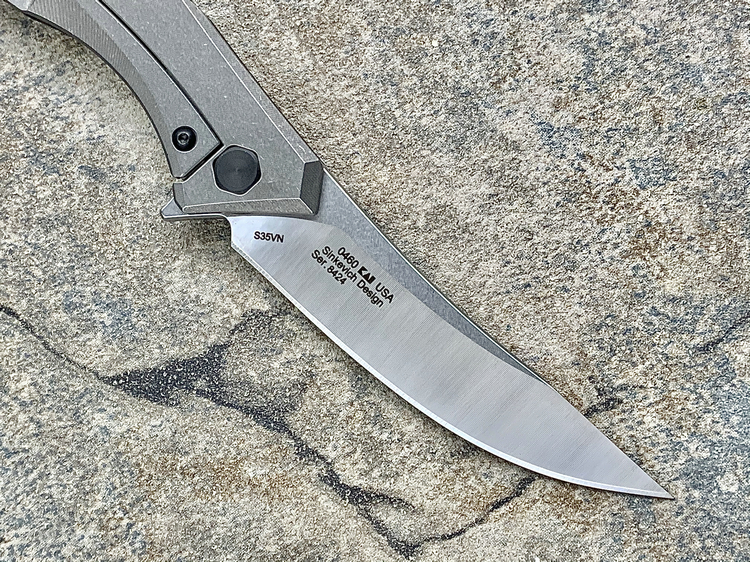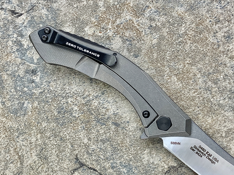 0460由Dmitry Sinkevich设计,是基于他的Polychotky Jr.原版一样,它有一个明显的符合人体工程学的手柄曲线,可以很好地掌控。手柄上的部分3D加工增加了尺寸,增强了操控度。 刃材为S35VN,具有韧性和抗切削性能,且不损失耐磨性。它富含铌、钒和铬碳化物,使刀锋锋利、持久。为了使刀片看起来更锋利,ZT给刀片两种颜色的抛光:石洗+拉丝。 KVT轴承Flipper鱼鳍快开。钛合金框架锁 锁定增加硬质合金。