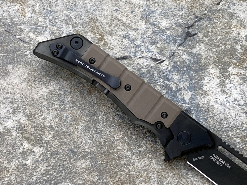 钛手柄DLC涂层和珠子喷砂,以延长哑光外观。0223有一个坚固的钛框架锁与硬化钢锁垫片。ZT的KVT滚珠轴承系统,结合一个高度符合人体工程学的鱼鳍快开,使0223快捷打开。0223的土棕色G10手柄让人联想起原来军刀的手柄。我们的G10包裹在手柄顶部,并在中间相交,提供一个舒适和安全的操控性,并帮助防止碎片进入。