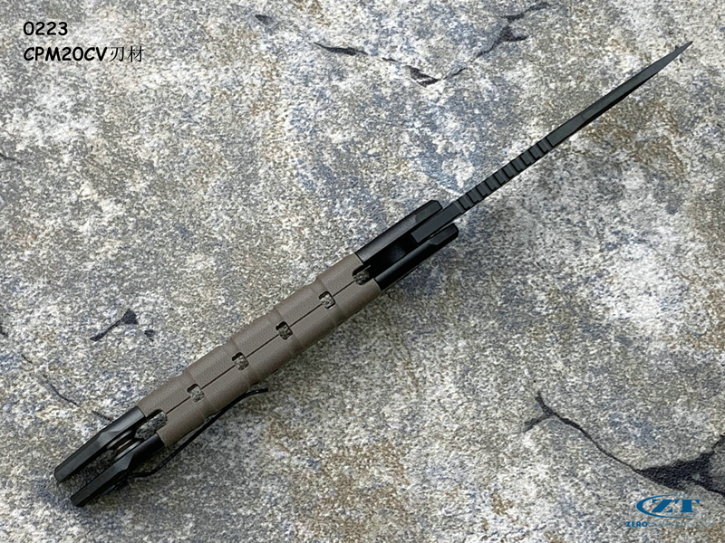 0223由Tim galyan设计,它的灵感来自于一把经典的军刀,但是ZT的版本是一款折刀,使得EDC变得容易,并且可以随时完成你要求它承担的每一项任务。