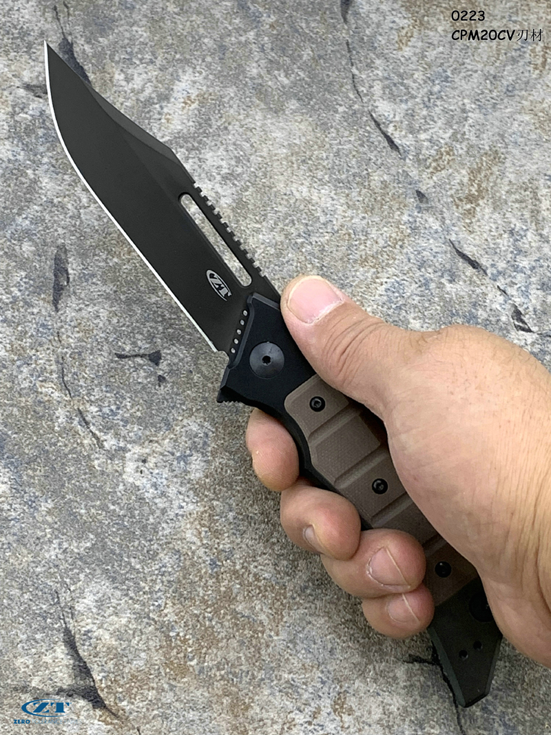 ZT 零误差 0223 Tim Galyean设计 CPM20CV刃材 棕色G10+钛合金手柄 Flipper 鱼鳍快开 KVT轴承 战术折刀