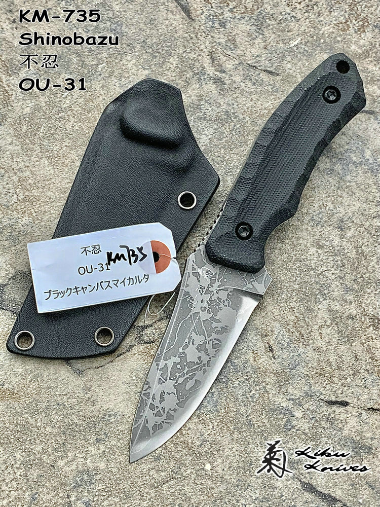类 型: 直刀全 长: 194mm刃 长: 81mm刃 材: OU-31硬 度: 62HRC刃 厚: 5.5mm柄 材:米卡塔重 量:187g产 地: 日本