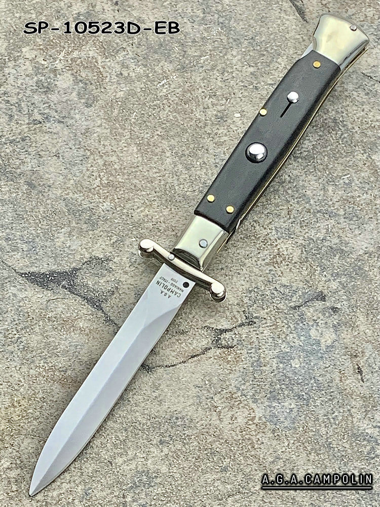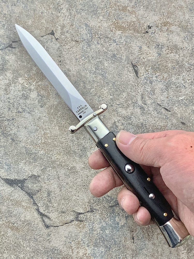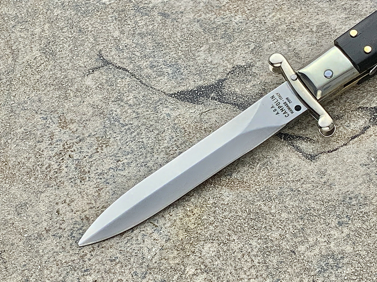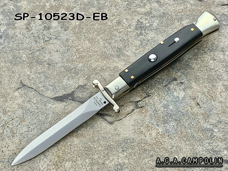 老安杰洛·坎波林(Angelo Campolin Sr. )1923年出生于意大利的马尼亚戈(Maniago)。二战前,他致力于完善他的制刀技术,并在这个时候制作了他的第一把刀片。战后,1947年,他创办了自己的公司,制作了30支标有“安杰洛·坎波林”的细高跟鞋(经典意大利侧跳)。虽然路程很远,他还是骑自行车去威尼斯卖。几年后,他开始与毛罗马里奥(Mauro Mario)建立合作关系,后者为许多美国进口商制造刀具,如Rosco、C.G.刀具、B.Svoboda、C.C.C刀具和其他美国市场刀具。而且,威尼斯和的里雅斯特的游客们也为这个“”讨厌“”的玩具而疯狂!安吉洛为38厘米和45厘米的大尺寸高跟鞋制作了工具。起初,这些是撬锁细高跟鞋,后来改为旋转垫片样式。在二战后的时代,坎波林是唯一一家生产这种尺寸的工厂。其他尺寸过去和现在都是由其他制造商生产的。20世纪60年代,他开始引入其他机制,包括锁回式。起初,这些都是用在切刀狩猎刀,然后也有一些细高跟鞋。它成为最流行的自动折叠猎刀。 20世纪70年代,安吉洛的儿子詹尼(Gianni ))开始在这家公司工作,他们专门为位于德国索林根的罗伯特·克拉斯公司(Robert Klaas company)折叠猎刀和手工折叠高跟鞋,上面有他们的吻鹤印记。这是猎鹰刀的开始,至今仍在营业。1999年,小安杰洛(Angelo Jr. ))21岁开始在公司工作。他第一次到美国去俄勒冈州参加刀展,展出了许多质量上乘的猎鹰折叠刀。他还喜欢快开刀,从这次展会和通过互联网与许多美国收藏家建立了关系和友谊。他开了自己的公司专门经营自动刀。有些是老安吉洛做的,有些是其他有独家协议的狂热工匠做的。这是他的公司AKC(Automatic Knives Creations, or Angelo Knives Campolin)的开始。 我们的目标是使用老刀工技术和传统提供高品质的自动刀。ANGELO CAMPOLIN JR.