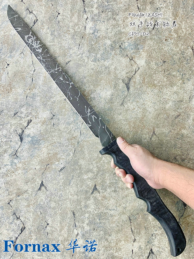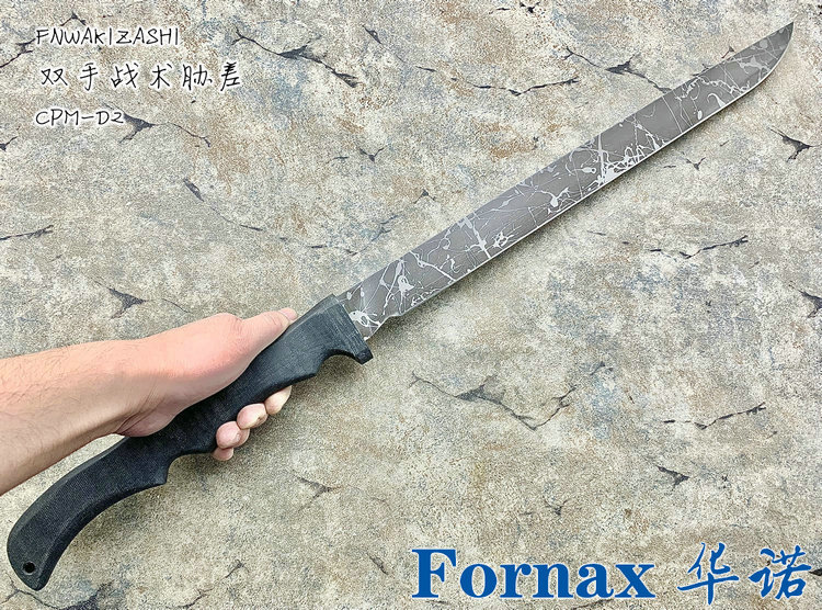 Fornax 华诺手工 FNWAKIZASHI CPM-D2刃材 喷溅纹 米卡塔柄 双手战术胁差 (预定)