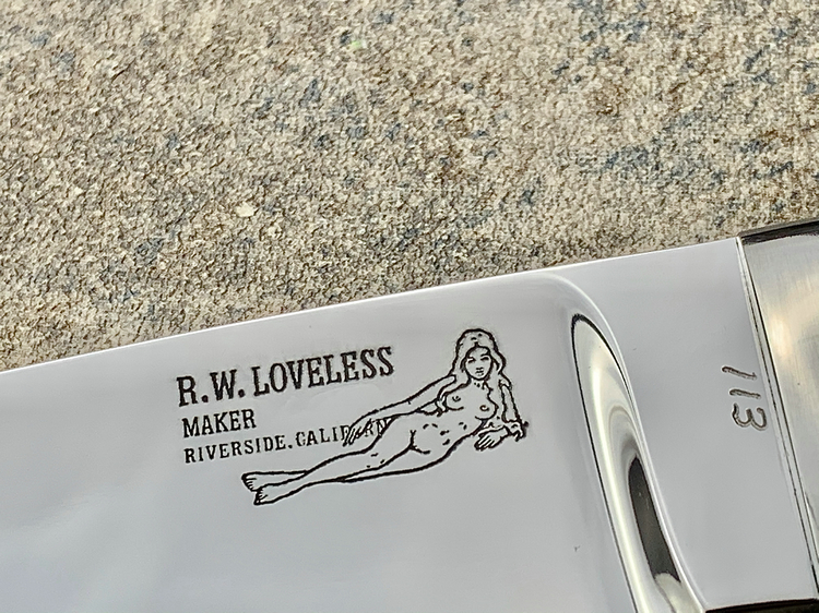 手工刀匠界的泰斗和开宗立派的人物 Loveless 全名R.W.LOVELESS,昵称BOB.loveless,1929年生,2010年逝世,世界最著名的大师。美国人曾经专门为他拍摄纪录片。