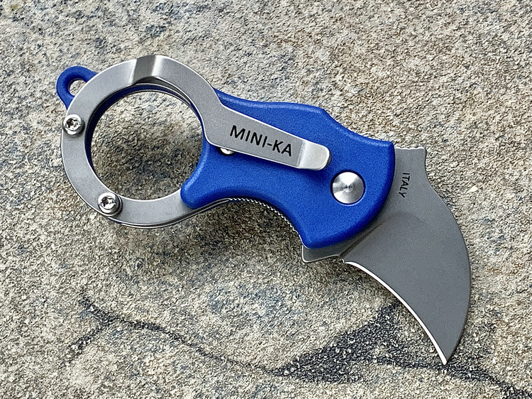 简单描述: FOX 意大利狐狸 FX-535BL Mini-KA 1.4116刃材 蓝色FRN柄 指环爪刀