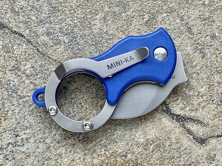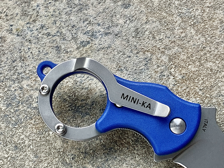 小小刀片只有2.5厘米。 虽然刀片尺寸小,但是用来割绳子、开快递、削树枝,它一样做的很好。 打开之后它的的总长度为81mm,总重量为33g。 挂在钥匙扣上,装在口袋里,又轻又小,存在感可以降到最低。 虽然小,但是折刀上该有的它也都有,比如口袋夹。 口袋夹与尾环为一体设计,上面印有它的型号。 这样的口袋夹设计非常有创意。