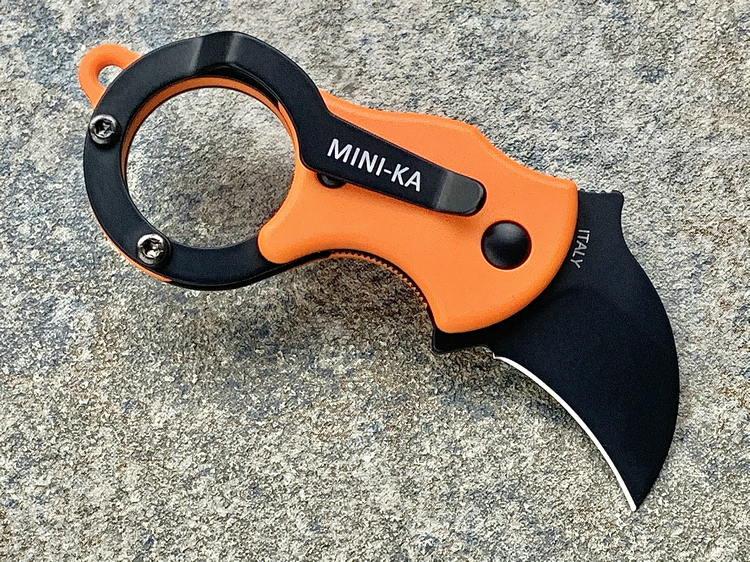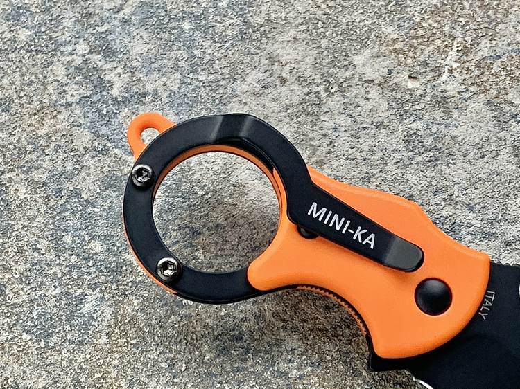 简单描述: FOX 意大利狐狸 FX-535OB Mini-KA 1.4116刃材 橘色FRN柄 指环爪刀