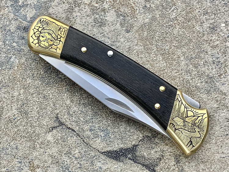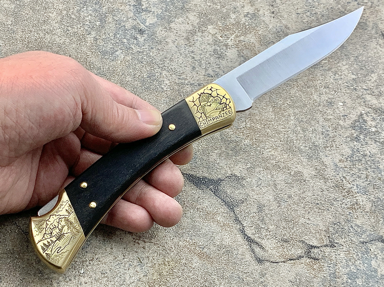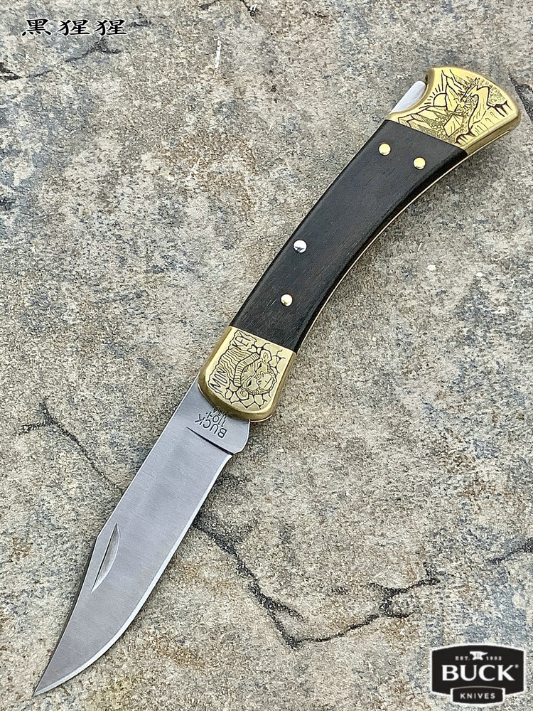 型 号: 0110BRS 全 长: 219mm 刃 长: 91.5mm 闭合长度: 125mm 刃 材: 420HC 硬 度: 58-60HRC 表 面: 缎面处理 刃 厚: 3mm 柄 长: 124mm 柄 材: 原木 锁 型: 背锁 重 量: 211g 原产地: 美国 美国著名刀厂BUCK公司此款经典折刀众所皆知,风格古典高雅且传统的原创造形广受爱刀之人士喜爱,经典木柄结合黄铜材质历久弥新, 刀身采420HC高级不锈钢搭配黄铜刀枕实木手柄让您无论在户外狩猎、钓鱼亦或露营使用上皆可感受到在传统且简单设计外的绝佳使用流畅性。 BUCK刀是北美制刀业中最出名的,以高品质而闻名。第一把BUCK刀生产于1902年,是年轻的刀匠学徒Hoyt Buck设计的。通过对钢材的回火处理从而使刀刃能够长久的保持锋利。Hoyt每把刀都是手工刀,他用废旧的锉刀做原材料。在二战期间,他做了很多刀来帮助北美的军队。在战争结束后,他去到圣地亚哥,和他的大儿子AL BUCK在1947年创办了H.H. Buck & Son公司。Hoyt去世于1949年,他的大儿子Al 接手领导公司度过了又一个关键的一年。 1902年Hoyt Buck设计制造出第一把BUCK刃,从那时开始,BUCK刀就开始设计CrossLock系列的刀,并在1994年获得了刀具年度大奖在1963年,Al BUCK设计的BUCK110可折叠猎刀引起了刀界工业的大革命。buck刀都是终身保修的,它的刃材使用美洲改造的不锈钢,高碳,高铬,使它的硬度保持在58-60HRC,并保持锋利的刀刃。经过多年努力,BUCK始终是大家公认的品牌。在美国人的心目中BUCK占有不可替代的主导地位,就像在中国提及“王麻子”刀剪一样出名,其经典产品110,119型猎刀是很多刀具设计制造的模坂和参考对象。钢材硬度高于同等类型的刀具,其420HC钢材甚至硬于某些品牌的ATS-34钢材。 由于BUCK公司的冶炼技术领先超前,很多的厂商也与其联手开发高科技产品,著名的菲罗比斯公司设计的美军M9多用途刺刀就是由BUCK公司OEM出品的。2000年,BUCK公司与STRIDER公司的结晶产品BUCK880B系列折刀,在世界折刀市场也掀起了不小的波澜!美国BUCK公司在海外无分厂,全都在美国基地生产。