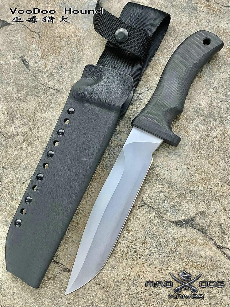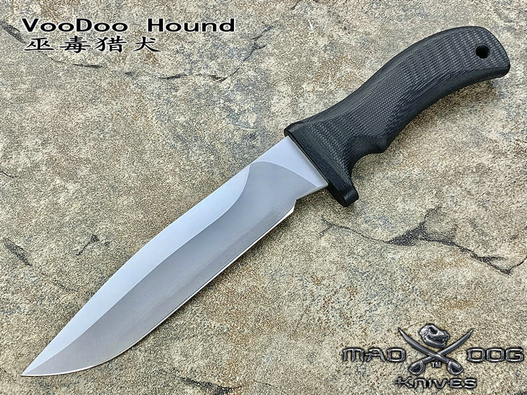 所有Mad Dog刀子及刀鞘系统都是以手工制作而成。Mad Dog钢材刀都是使用一种叫Starrett 496-O1的高碳工具钢,最独特的是它的热处理方式,先经过硬化(Hardened)然后再选择性回火(selectively tempered)而成。每个部分的热处理都不一样,刀锋部分的硬度是63-67HRC,在刀背部分则是50-55HRC,刀尖部分是59-61HRC,手柄部分48-52HRC,整刀分为4个部分处理,这种科学的方法成为分段热处理。这种方法可以使刀具既有很高的硬度又有较强的韧性,劈砍,穿刺,切割,撬砸等,能适应各种高强度工作。