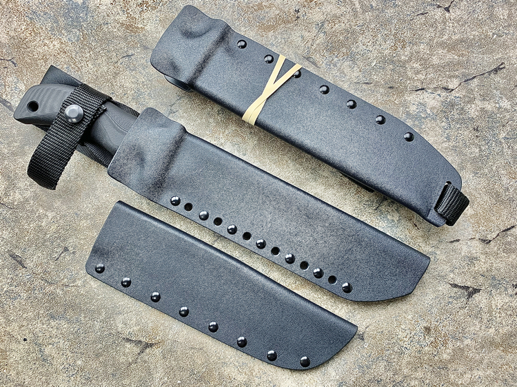 所有Mad Dog刀子及刀鞘系统都是以手工制作而成。Mad Dog钢材刀都是使用一种叫Starrett 496-O1的高碳工具钢,最独特的是它的热处理方式,先经过硬化(Hardened)然后再选择性回火(selectively tempered)而成。每个部分的热处理都不一样,刀锋部分的硬度是63-67HRC,在刀背部分则是50-55HRC,刀尖部分是59-61HRC,手柄部分48-52HRC,整刀分为4个部分处理,这种科学的方法成为分段热处理。这种方法可以使刀具既有很高的硬度又有较强的韧性,劈砍,穿刺,切割,撬砸等,能适应各种高强度工作。