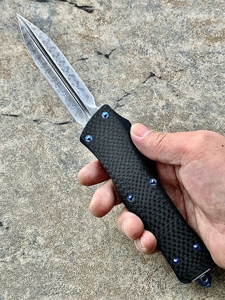 全长:240mm 刃长:100mm 刃厚:3mm 刃宽:21mm 刃材:Hand Ground Polished Damascus 手工抛光大马士革 硬度:61HRC 闭合:144.5mm 产地:美国 重量:114g