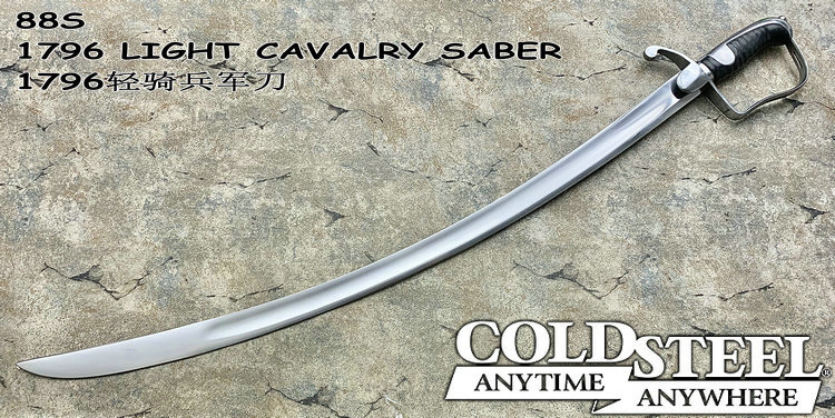 类 型: 骑兵刀 型 号: 88S 全 长: 954mm 刃 长:820mm 刃 材:1055 硬 度: 59-60HRC 表 面: 缎面处理 刃 厚: 8mm 刀 鞘: 皮鞘 重 量: 978g 产 地:印度 This saber was widely used by the British and their Prussian allies under General Blucher in the Battle of Waterloo. The blade was derived from the ferocious Indian Talwar and was reviled by the French who protested its use due to the horribly destructive wounds it inflicted. In fact, this saber was so successful as a cutting weapon, that the German Cavalry continued to use it right up to the beginning of the 20th century! If you want a combat quality saber that will pass the British Proof Test and is fully capable of shearing off arms and even legs with a single blow, this is a must have! It comes with a sharpened forward edge and your choice of wood and leather scabbard with steel mounts and fittings, or an all metal scabbard. The 1796 Light Cavalry Saber comes with your choice of an all steel scabbard or a wood/leather scabbard. Both versions feature steel mounts and fittings.