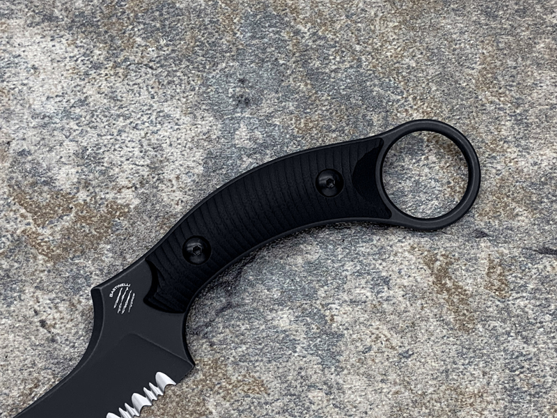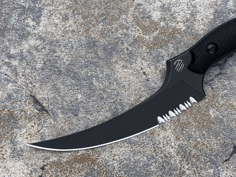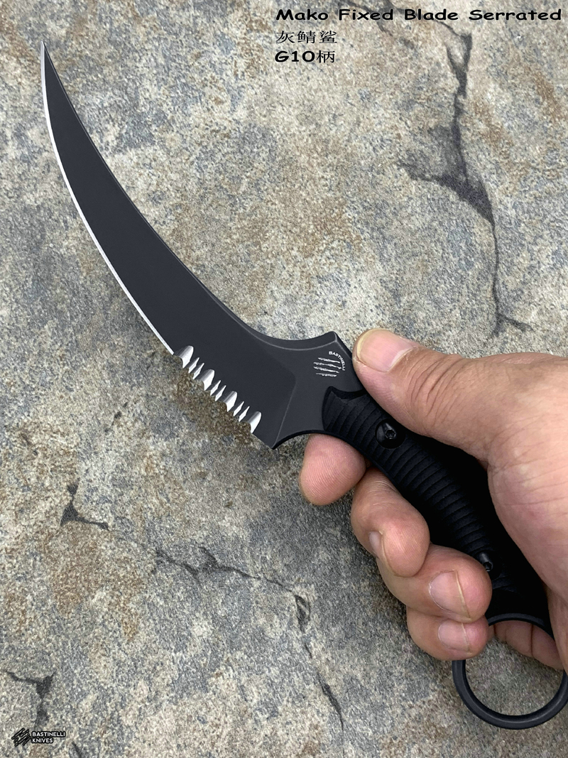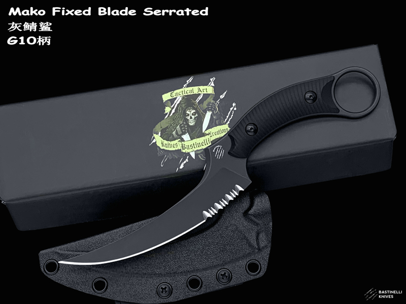 Bastinelli 巴斯蒂内利 Mako Fixed Blade Serrated 灰鲭鲨 N690Co刃材黑色石洗半齿 G10柄战术直刀(现货)