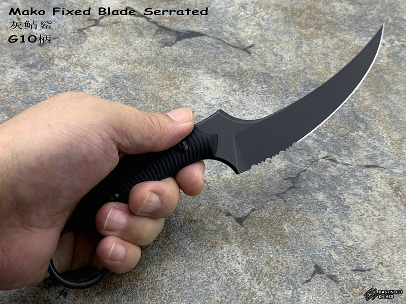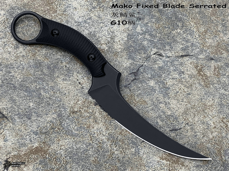 Bastinelli 巴斯蒂内利 Mako Fixed Blade Serrated 灰鲭鲨 N690Co刃材黑色石洗半齿 G10柄战术直刀