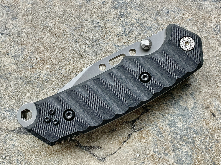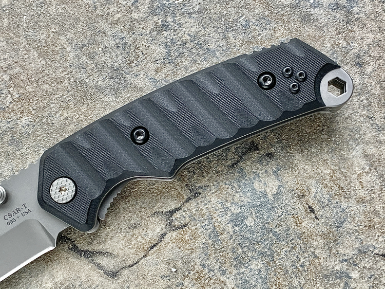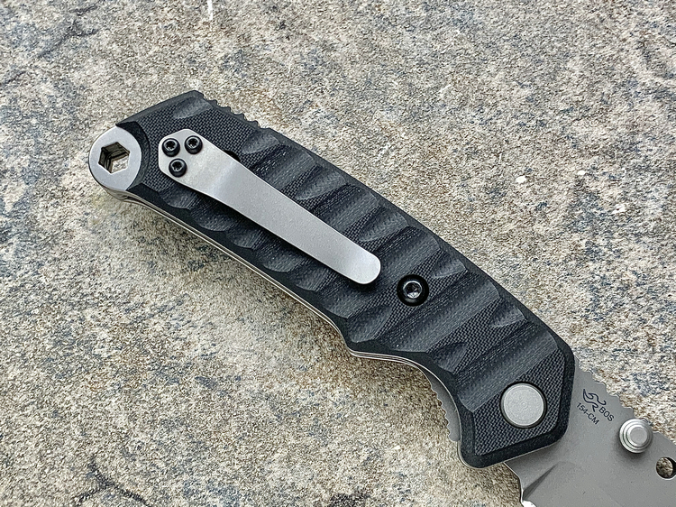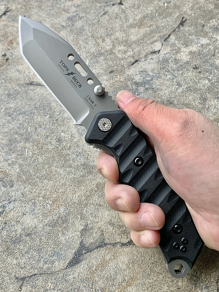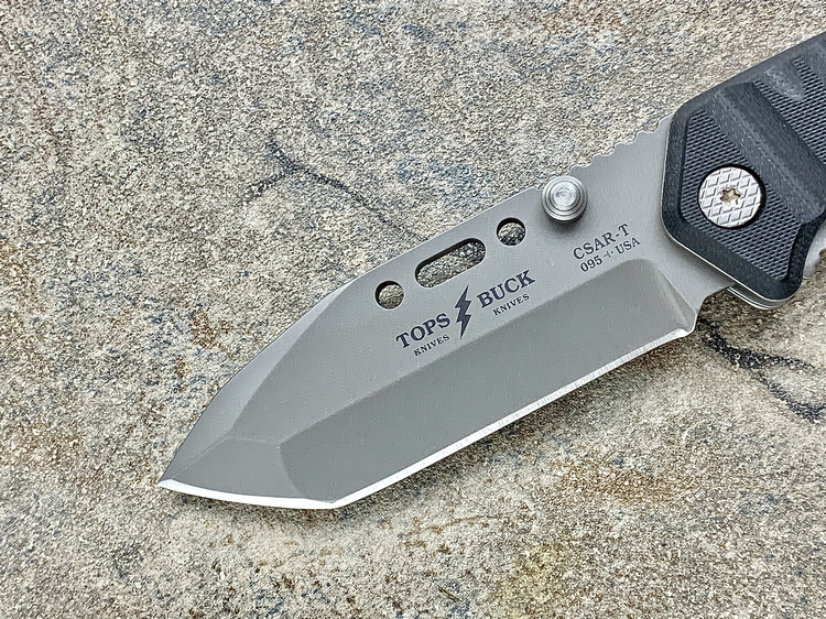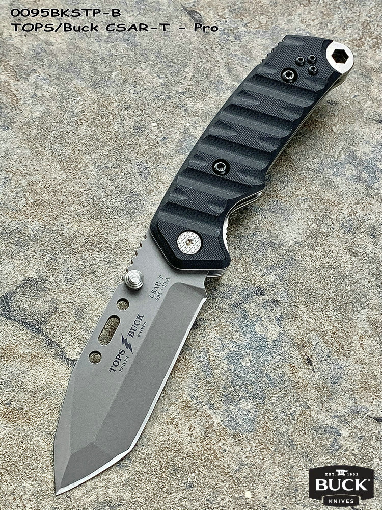 全长:230mm 刃 长: 89mm 刃 材: 154cm BOS标 硬 度: 60HRC 刃 厚: 4.5mm 表 面: 钛涂层柄 长: 141mm柄 材: G-10 重 量: 241g 原产地: 美国 BUCK+TOPS BUCK095BKSTP是2010年BUCK和美国著名军用刀具制造商TOPS合作出品的第一款 战术折刀,刀身采用154cm钢制造,刀柄内为154cm全钢内衬+G10镶片,整刀工艺考究用料扎实,具有非常高的实用性及作为BUCK&TOPS双方合作首款刀也是有收藏意义。