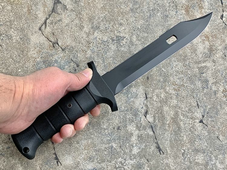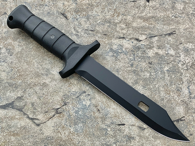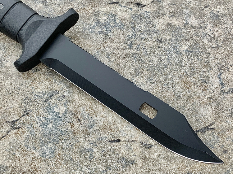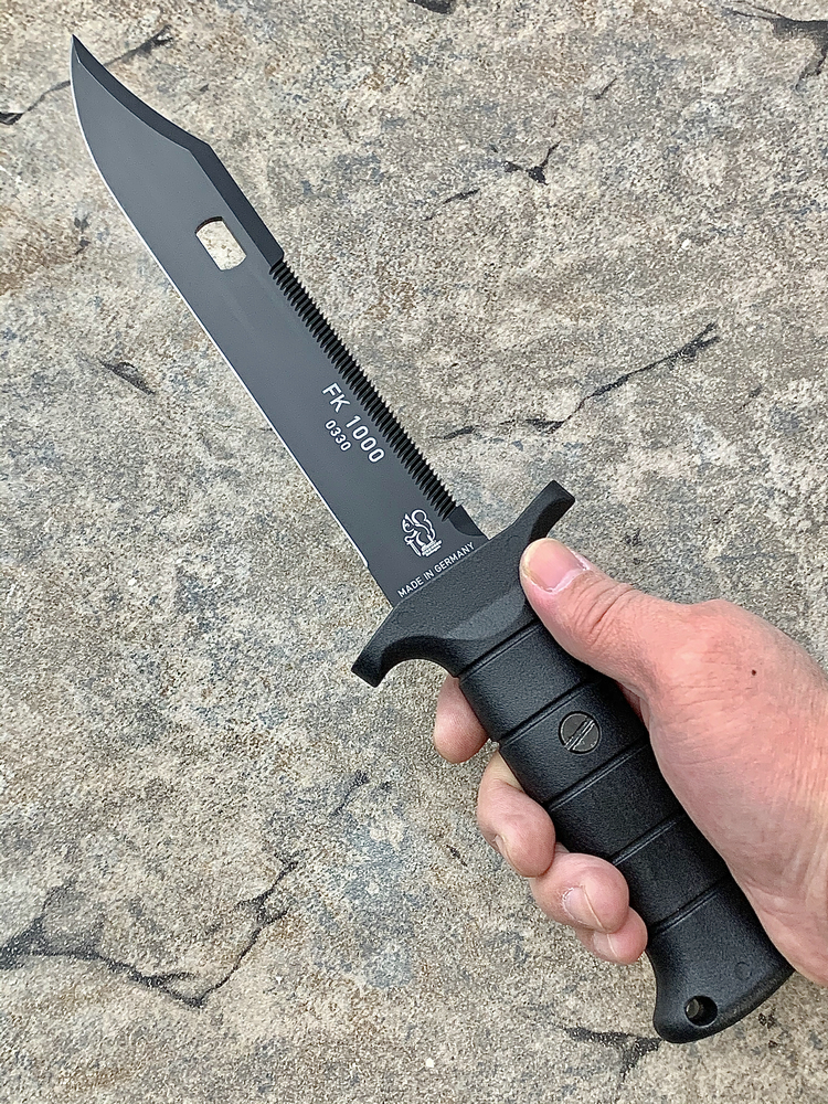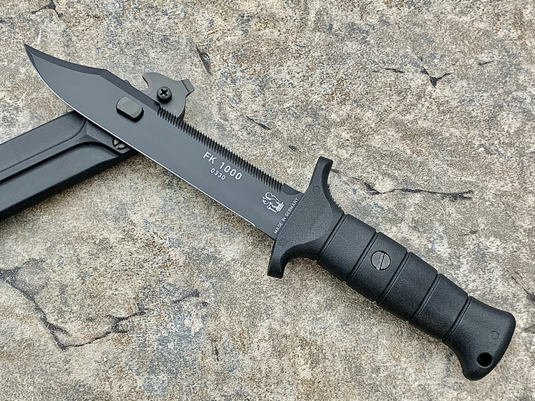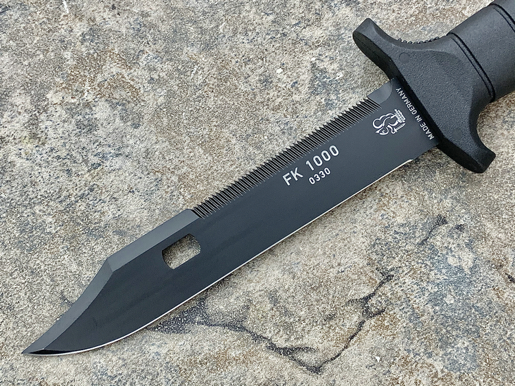 FK1000是Eickhorn-Solingen公司推出的高性价比战斗刀,黑色Kalgard涂层有效的保护刀具免受腐蚀并防止反光。一体式刀片贯穿整个玻璃纤维增强塑料手柄符合人体工学设计,可以无疲劳工作!
