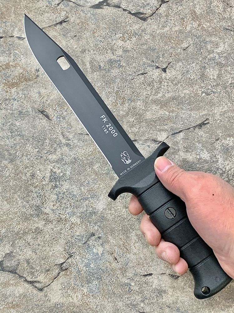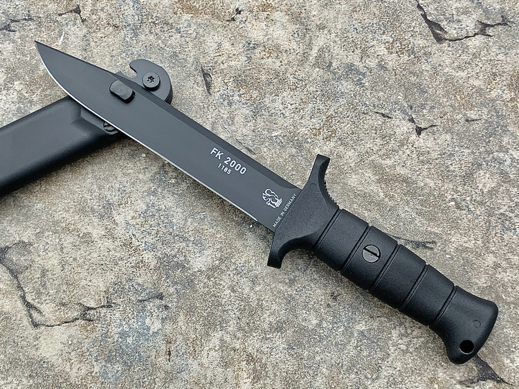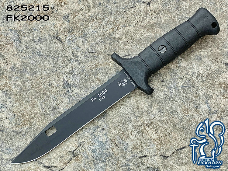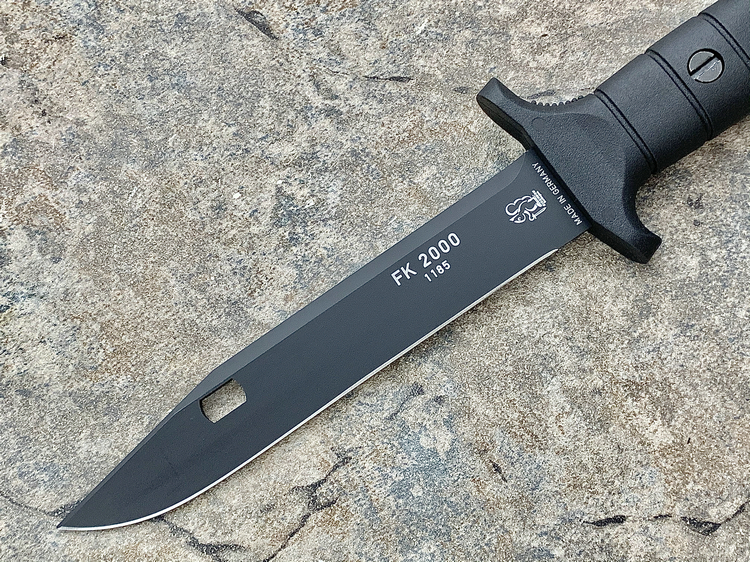 FK2000是Eickhorn-Solingen公司推出的高性价比战斗刀,黑色Kalgard涂层有效的保护刀具免受腐蚀并防止反光。一体式刀片贯穿整个玻璃纤维增强塑料手柄符合人体工学设计,可以无疲劳工作!