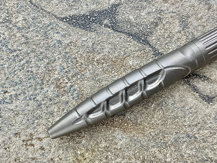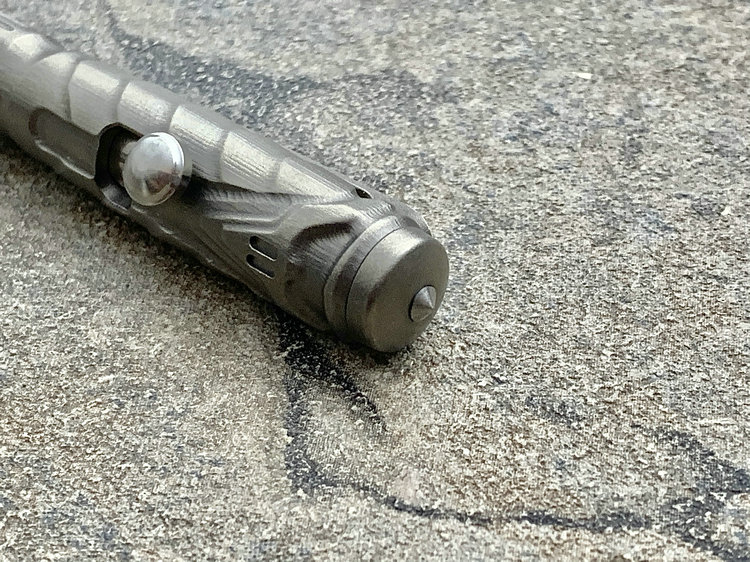 这款战术笔具有坚固的3D雕刻。笔盖部位有O型圈可以帮助保持笔芯水分散失。笔尖配备玻璃粉碎器(打击头)可以轻易击碎玻璃或作为自由防御工具以防意外的外来攻击。