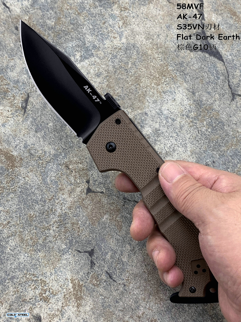 事实证明,冷钢 AK-47 系列非常受军事人员和执法专业人员的欢迎,而且有充分的理由!每个 AK-47 都具有坚固的G10刀柄和S35VN合金钢刀片,真空热处理和深冷处理以获得最大韧性,锋利的刀刃及锋利保持性。每个 AK-47 刀片还经过 DLC(类金刚石)涂层,具有出色的耐腐蚀性和耐磨性。每把刀都具有高品质 G-10 手柄,即使在戴厚手套或在寒冷或潮湿的条件下工作时也能提供令人难以置信的操控性,并且配备我们的 Tri-Ad 锁。 Tri-Ad 可以说是世界上最强大的锁定机制。具有坚如磐石的锁定和极端的抗冲击能力 - 这是能够被军事人员和执法专业人员特别关注的两个特点,在最恶劣的情况下我们需要可靠的工具!最后,为了确保完全灵巧和闪电般的快速出刀,每把 AK-47 都配备了我们的专利快开板,在从口袋拿出时即可通过快开板钩住口袋边缘实现刀是打开状态。