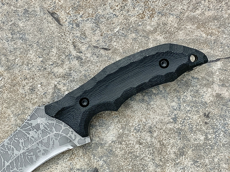 类 型: 直刀全 长: 289mm刃 长: 156mm刃 材: OU-31硬 度: 62HRC刃 厚: 6.2mm柄 材:米卡塔重 量:410g产 地: 日本