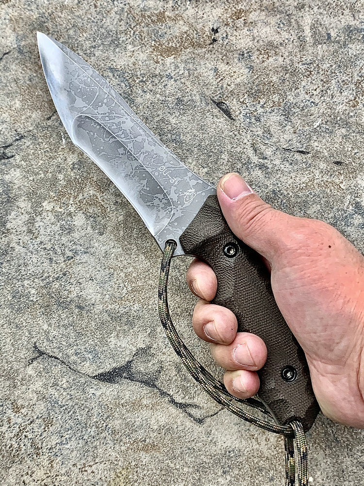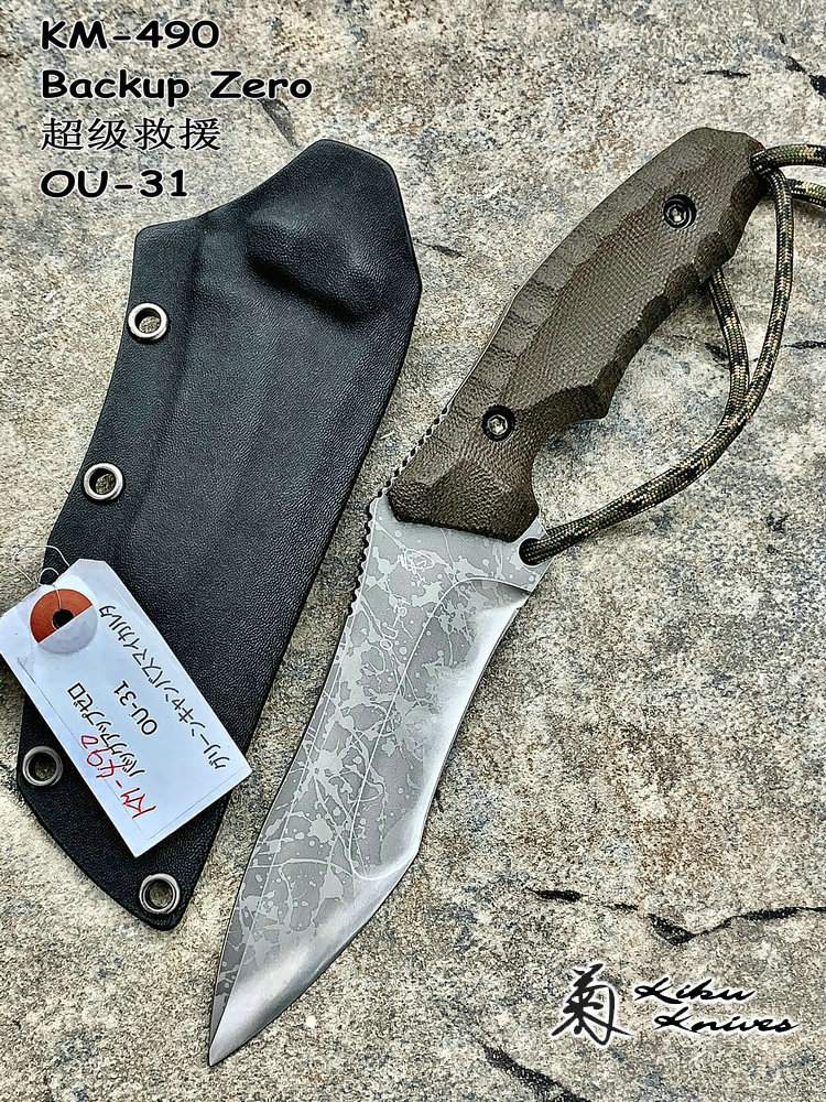 类 型: 直刀全 长: 240mm刃 长: 116mm刃 材: OU-31硬 度: 62HRC刃 厚: 5mm柄 材:米卡塔重 量:263g产 地: 日本KikuMatsuda 松田菊男 KM490 战术后援 标志性的分段研磨,刀尖部分蛤刃凸磨高强度适合穿刺,刀刃采用凹磨锋利适合切割!很强大的一支短刀!