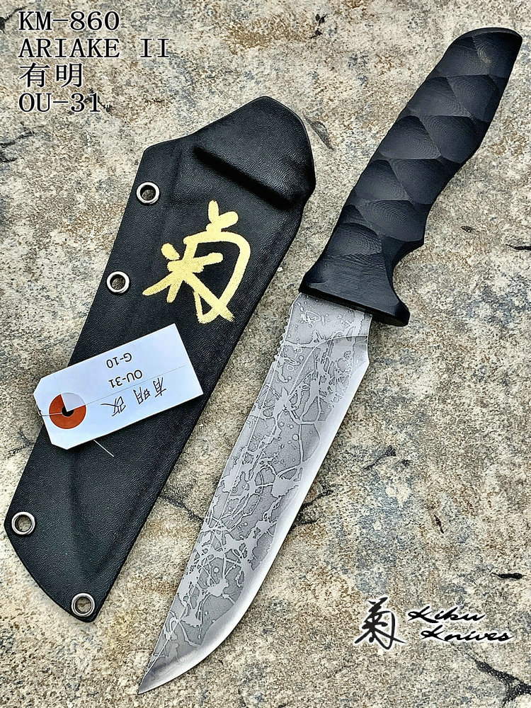 全长:295mm 刃长:165mm 刃宽:37.5mm 刃厚:4.8mm 刃材:OU-31 硬度:62HRC 重量:283g 原产地:日本