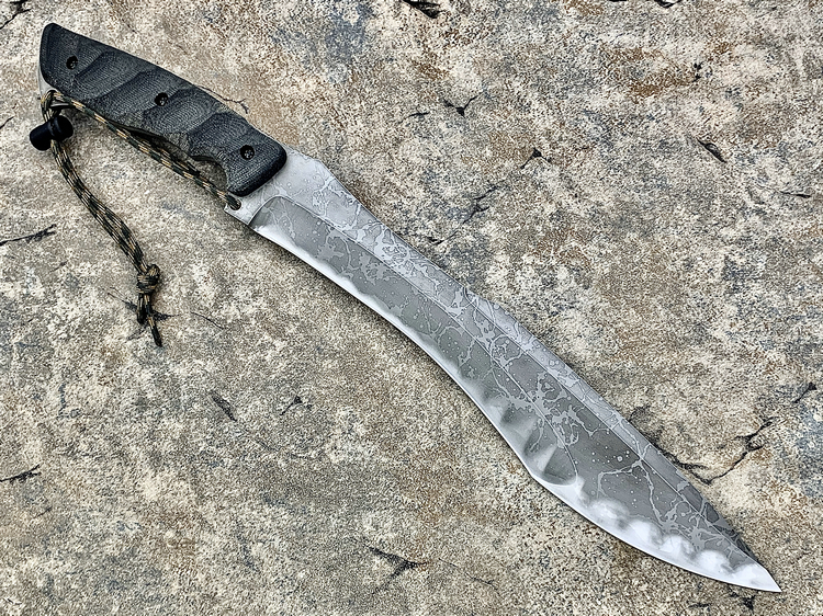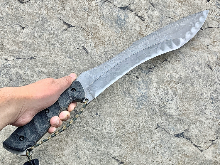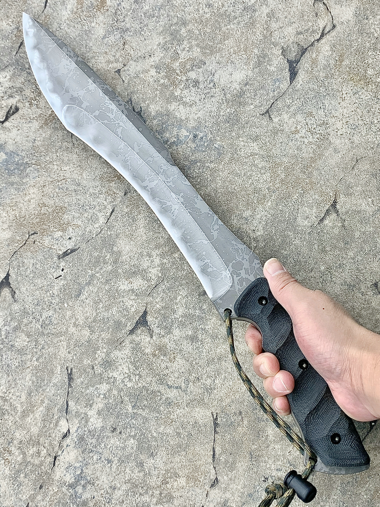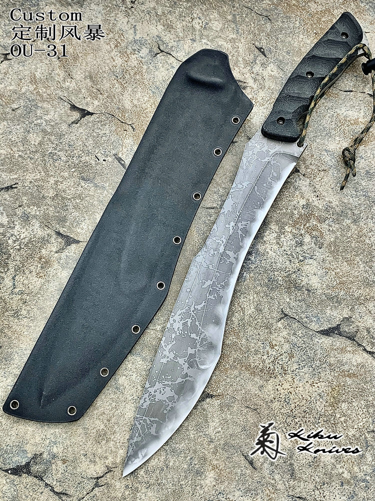 全 长: 490mm刃 长: 323mm刃 材: OU-31硬 度: 62HRC刃 厚: 8mm柄 材:米卡塔重 量:1005g产 地: 日本