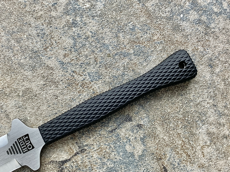 柄部刀条完全封装在Griv-Ex材质当中,这种拥有超薄设计的优势让产品可以轻松藏在最薄的西装,西裤或制服裤内。柄部密布防滑槽口提供加大的防滑和把握力,刀根处的完整护手也提供了进一步的安全保护。刀尾的较大系绳孔使得用户可以较容易的附加伞绳进一步提升刃具的使用范围。