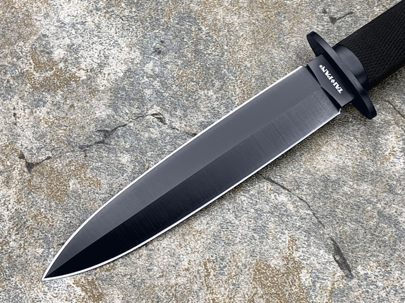 Tai Pan具有第一流匕首所有最好的特征。大多数匕首都是细长瘦削的刀尖,这样在使用的过程中很容易断掉。TAI PAN的特征是具有非常强健和宽厚的刀尖,这样足够击穿物体而坚韧的刀尖不会受到损伤。黑色KRATON制成的椭圆型刃柄,握持感非常好,保证了刀子在大力使用时不会有滑动和翻滚的现象发生。