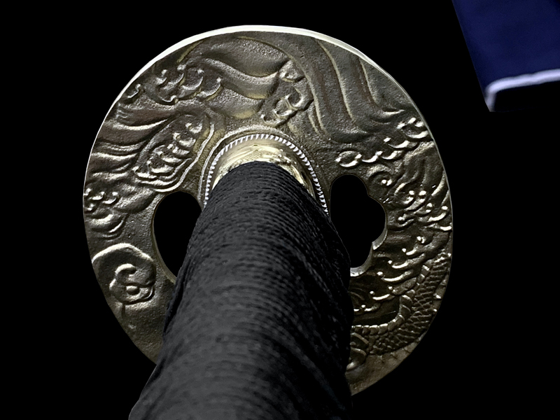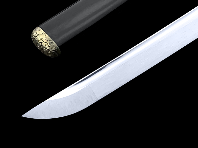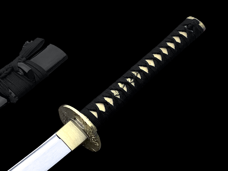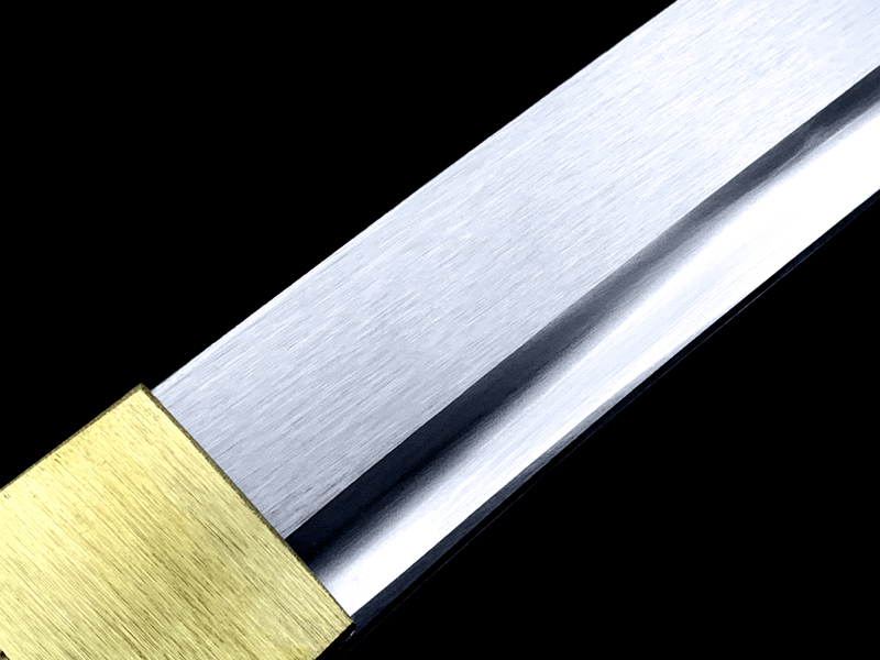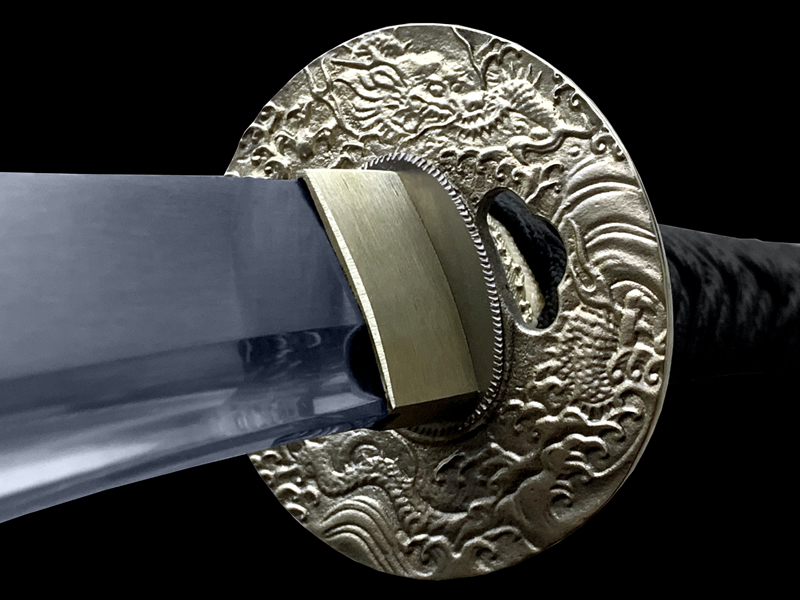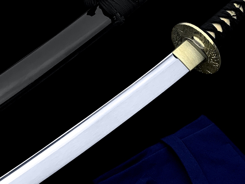 Cold Steel公司一直坚持使用传统材料来制造日本刀,护手(镡)和柄头(头)都用镍银铸成,而且做工考究。黄铜鞘口(鲤口)是用全手工制作抛光而成。手柄上包裹的是真鲛皮,并且用黑线用传统十字交叉方式缠裹。刀刃都用1060高碳钢,由经验丰富的职业刀匠手工锻造打磨,按照传统日本铸刀方法制造而成。每一把刀都配有一个黑色漆面木鞘。