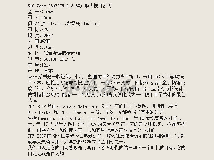 SOG ZM1018-BX Zoom 首款S30V刃材 助力快开折刀