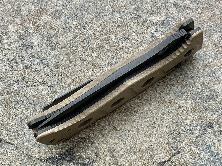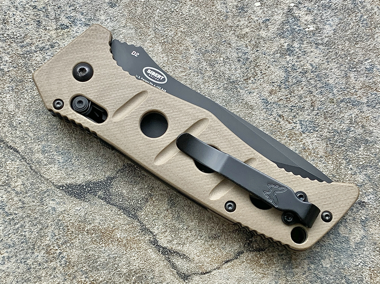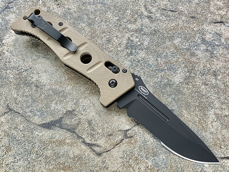Benchmade 蝴蝶 9570BK-1 MINI CLAYMORE 游骑兵绿色Grivory手柄 CPM-D2钴黑刃全刃迷你战术侧跳(现货)