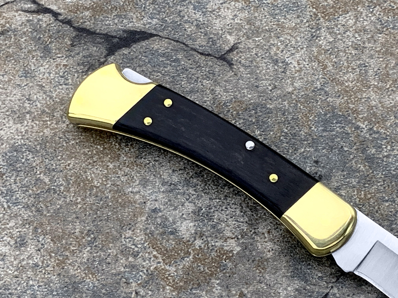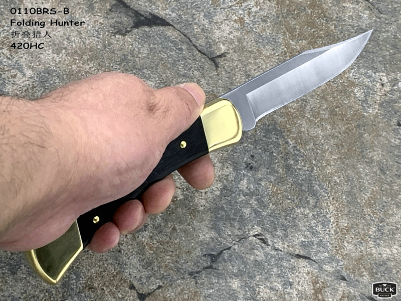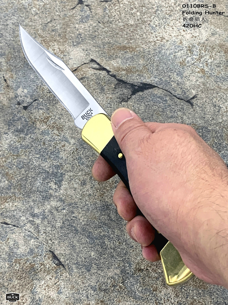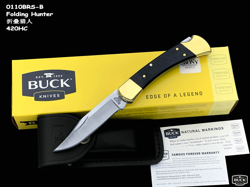 美国著名刀厂BUCK公司此款经典折刀众所皆知,风格古典高雅且传统的原创造形广受爱刀之人士喜爱,经典木柄结合黄铜材质历久弥新, 刀身采420HC高级不锈钢搭配高质感黑色皮套让您无论在户外狩猎、钓鱼亦或露营使用上皆可感受到在传统且简单设计外的绝佳使用流畅性。 BUCK刀是北美制刀业中最出名的,以高品质而闻名。第一把BUCK刀生产于1902年,是年轻的刃匠学徒Hoyt Buck设计的。通过对钢材的回火处理从而使刀刃能够长久的保持锋利。Hoyt每把刀都是手工刀,他用废旧的锉刀做原材料。在二战期间,他做了很多刀来帮助北美的军队。在战争结束后,他去到圣地亚哥,和他的大儿子AL BUCK在1947年创办了H.H. Buck & Son公司。Hoyt去世于1949年,他的大儿子Al 接手领导公司度过了又一个关键的一年。 1902年Hoyt Buck设计制造出第一把BUCK刀,从那时开始,BUCK刀就开始设计CrossLock系列的刀,并在1994年获得了刀具年度大奖在1963年,Al BUCK设计的BUCK110可折叠猎刀引起了刀界工业的大革命。buck刀都是终身保修的,它的刃材使用美洲改造的不锈钢,高碳,高铬,使它的硬度保持在59-60HRC,并保持锋利的刀刃。经过多年努力,BUCK始终是大家公认的品牌。在美国人的心目中BUCK占有不可替代的主导地位,就像在中国提及“王麻子”刀剪一样出名,其经典产品110,119型猎刀是很多刀具设计制造的模坂和参考对象。钢材硬度高于同等类型的刀具,其420HC钢材甚至硬于某些品牌的ATS-34钢材。 由于BUCK公司的冶炼技术领先超前,很多的厂商也与其联手开发高科技产品,著名的菲罗比斯公司设计的美军M9多用途刺刀就是由BUCK公司OEM出品的。2000年,BUCK公司与STRIDER公司的结晶产品BUCK880B系列折刀,在世界折刀市场也掀起了不小的波澜!美国BUCK公司在海外无分厂,全都在美国基地生产。