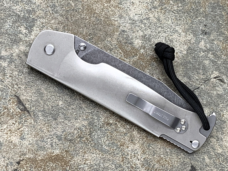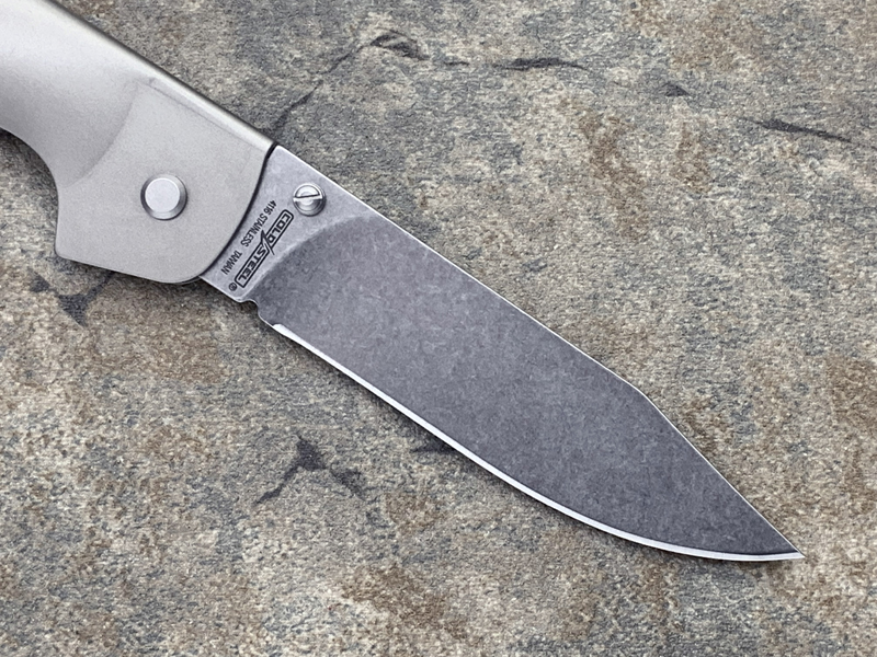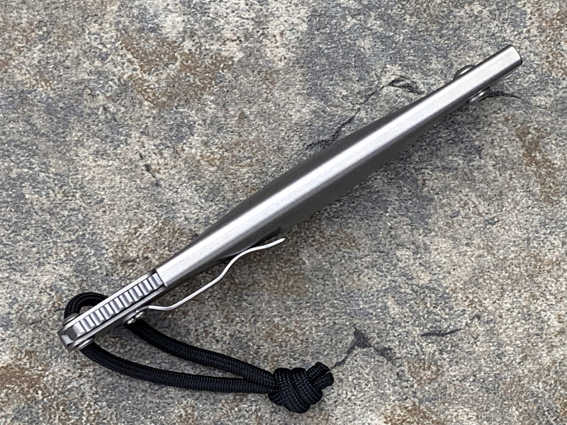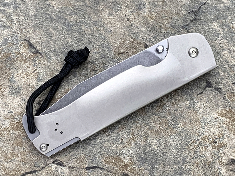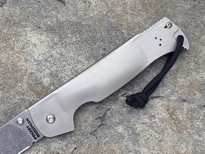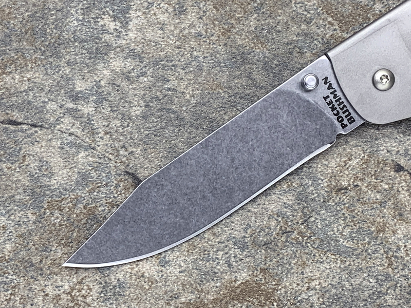 由定制刀具制造商 Andrew Demko 设计,创新的 Ram Safe 锁与 Pocket Bushman 的单块手柄配合使用。 实心钢棒在弹簧张力的作用下前后移动,而强大的压缩力始终驱动冲头前进。 这种向前的动作使刀片在折叠时牢固地关闭,并在使用时牢固地锁定打开。 打开时,刀片柄脚搁板和钢架之间的倾斜撞锤楔入,使其非常坚固,并在压力下自动调节,形成一个新的坚固锁定装置,抗磨损。