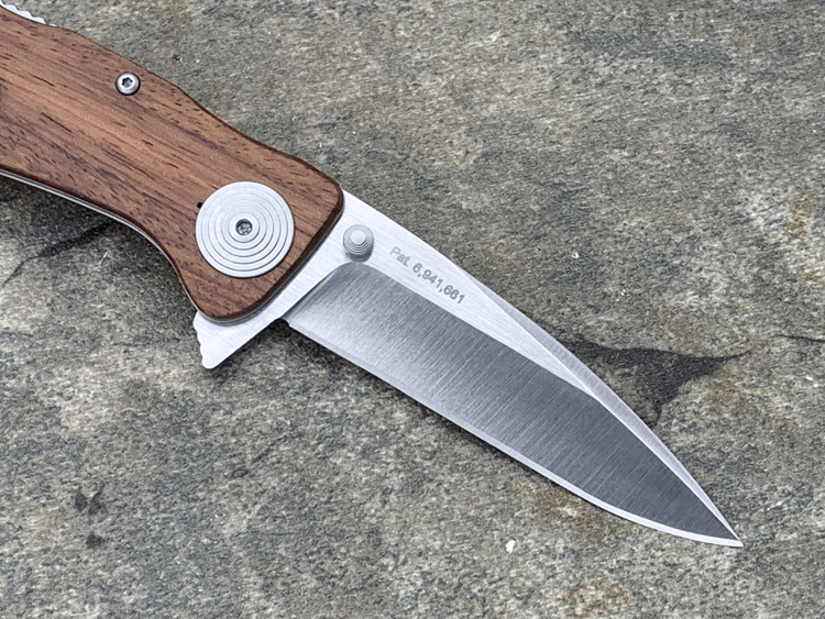 轻拨鱼鳍快开即可做到迅疾出刀,背锁设计,背部有保险装置以免误开,干净清爽的拉丝刃面配素雅的黄檀木刀柄给人以清爽大方的感觉,现已停产,绝版现货切莫错过!