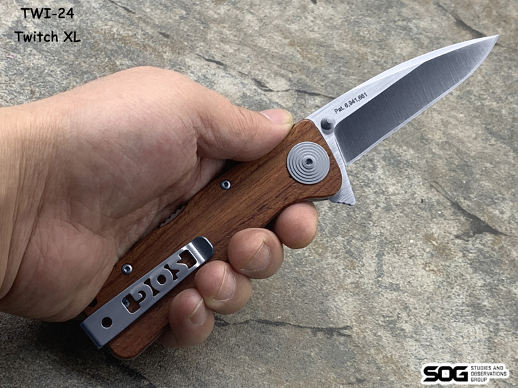 SOG TWI-24 Twitch XL Wood 黄檀木柄助力快开折刀(现货)