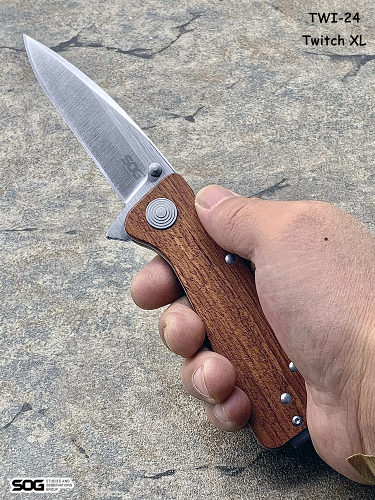 SOG TWI-24 Twitch XL Wood 黄檀木柄助力快开折刀