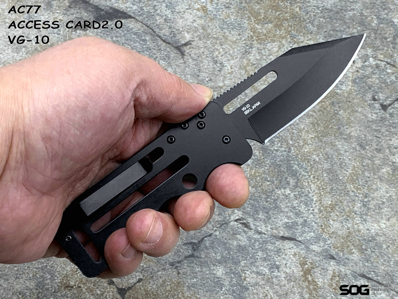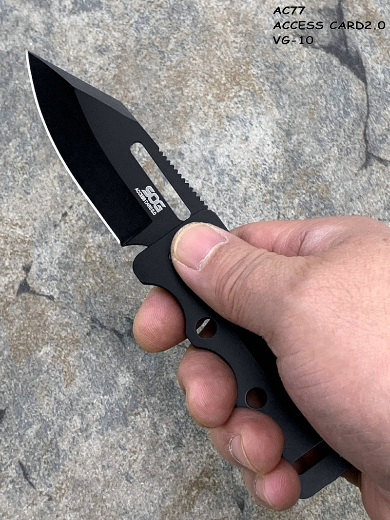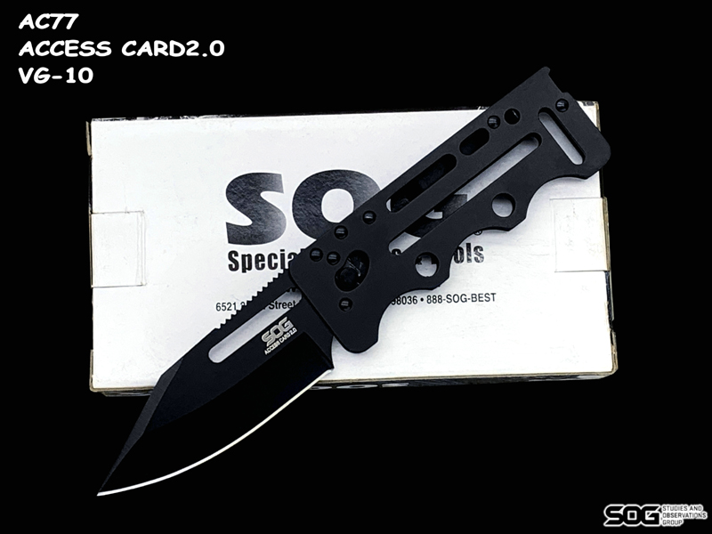 SOG工具卡折刀拥有高雅工艺设计感,纤薄不锈钢外型,薄到您可以与您的信用卡收纳在一起,不仅美观又坚固耐用,让您随时随地,只要需要它就马上派得上用场!就是那么的轻巧、平滑,让您好握又方便携带。主体设计-采用VG-10不锈钢处理制造而成,能单手快速且顺畅地开启。手柄不锈钢涂层,纤薄不锈钢外型.安全开启/闭合方式-开启时,只需顺势将刀刃上别致的水滴孔向上方伸展,听到"喀"一声即可固定住,让您在开启这把折刀时会比其它刀子来的轻松与省力,相当得心应手。闭合时-只须以大拇指往下轻压手柄上创新的Arc-Lock安全卡榫即可收起刃刃,让您使用起来更加安全有保障! 贴心设计-背夹,可当作钞票夹或是随身佩带、携于背包中,或任何你想收藏,且能轻易拿取的地方。 Arc-Lock[表情] 锁技术,具有以下优点:优势:实测可承受超过1000磅,锁定强度远远超过传统线锁及背锁.速度:快速单手打开和闭合.安全:弹簧作用安全地保证刀片闭合,在解锁时保证手指的安全.耐用性:随着时间的推移具有自动调节功能,可长期保持最佳性能,容易清理.