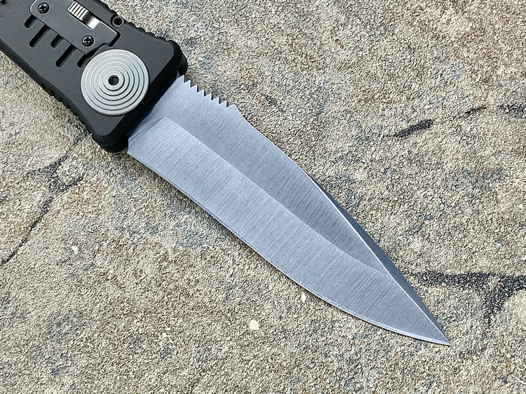 轻按按钮即可做到迅疾出刀,刀柄有保险装置以免误开,干净利落的拉丝刃面配素雅的铝合金刀柄给人以清雅大方的感觉,现已停产,绝版现货切莫错过!