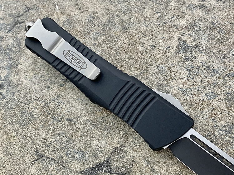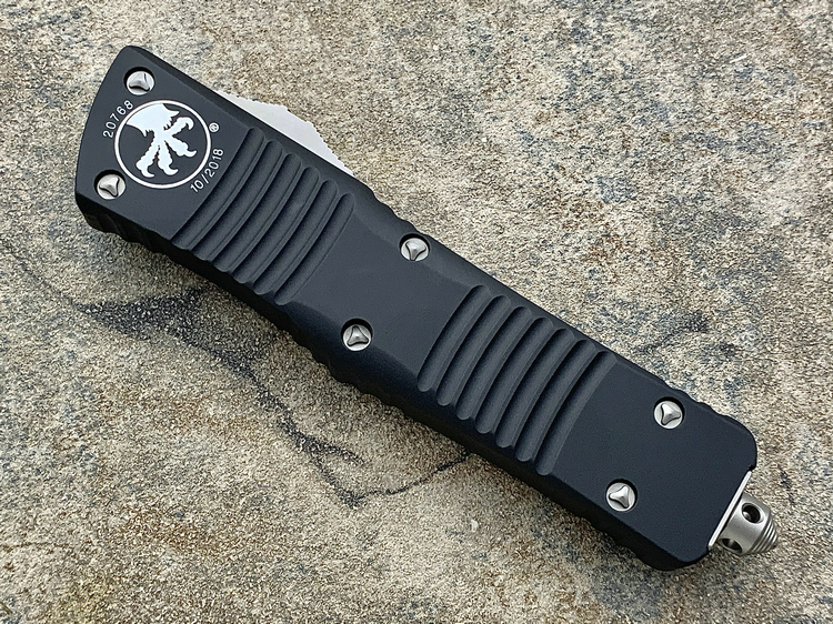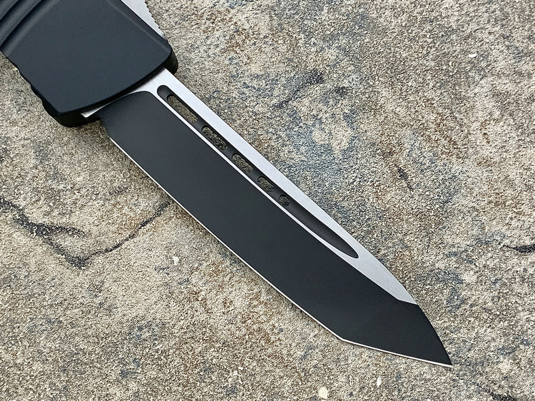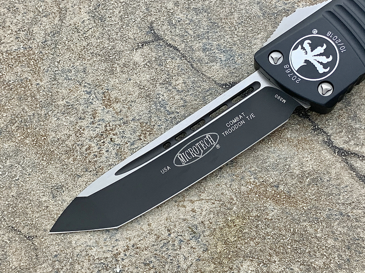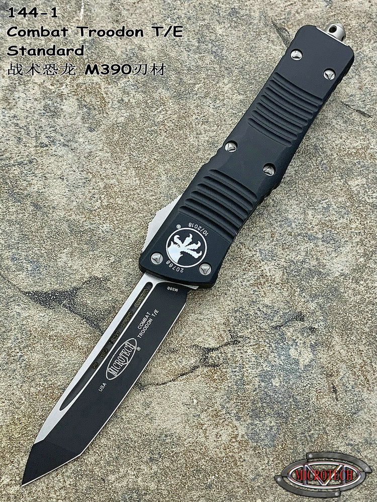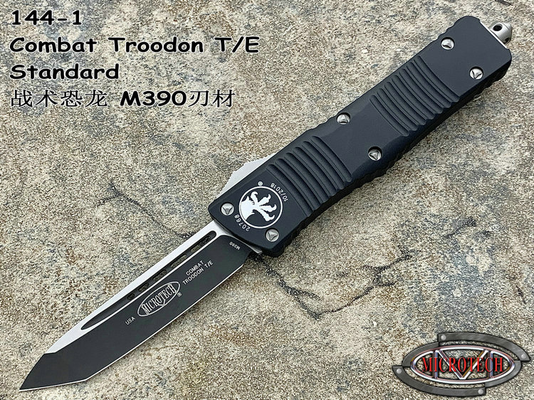 为了满足用户对战术实用性的更高要求,微技术公司在经典款—伤齿龙系列作品的基础上,推出了尺寸与威力更加强大的战术恐龙系列(Combat Troodon)作品。拥有最佳的抓握手感,以及最出色的切削表现力。 恐龙系列直跳的受欢迎程度大大刺激了MT公司,随后微技术在原型刀的基础上拓展出大量的型号。这些产品进行了微小的改动,满足各种使用要求的用户需求。这把144-1采用M390不锈钢锻造,表面经过黑色涂层工艺处理消除炫光,并有效提高刀身的抗锈蚀和耐磨损性能。平磨刃面拥有精细的切割性能,并在刀身上开有减压血槽和减压孔槽,在粗重的切削操作中能强化刀身强度,分散压力保持稳定性能。 刀具手柄采用黑色6061-T6航空级氧化铝制作,柄身表面的凹槽波纹让刀具更加防滑。它具有极其复杂的内部机制,提高整把刀的功能和可靠性。刀柄上还配有喷砂处理后的不锈钢背夹和击破器等附件。