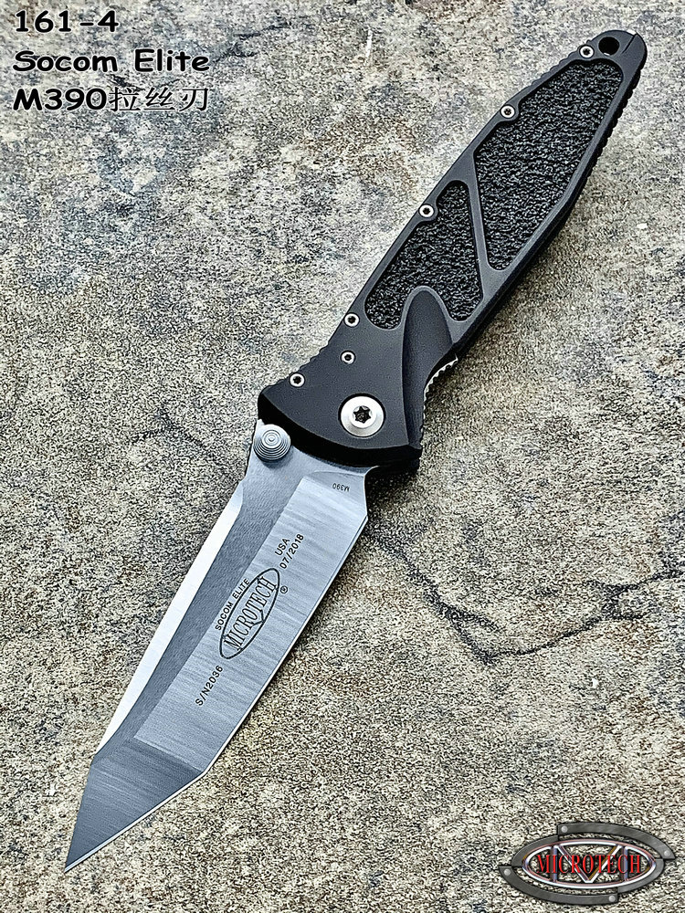 简单描述: Microtech 微技术 161-4 Socom Elite 海豹突击队精英 M390拉丝刃 阳极氧化铝合金手柄镶嵌磨砂条 战术折刀