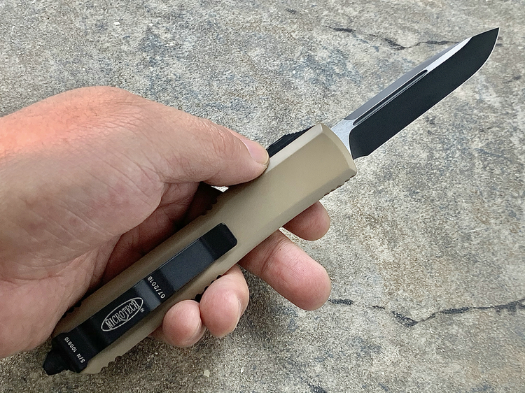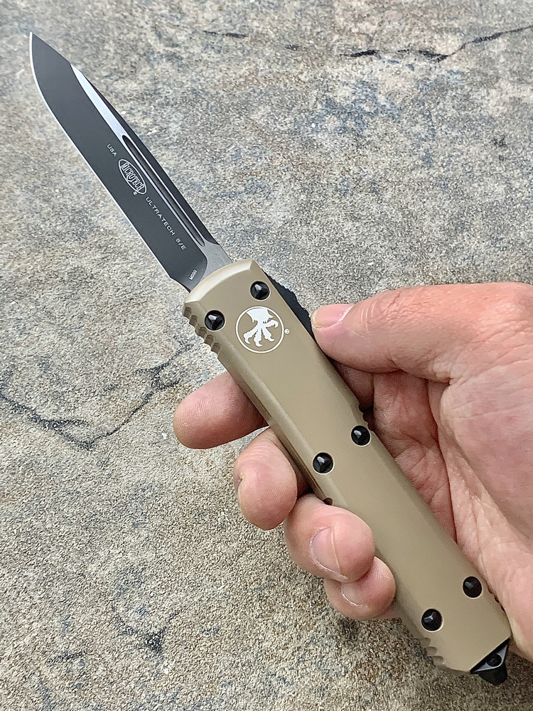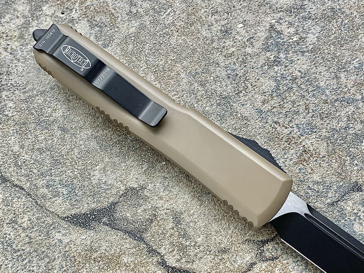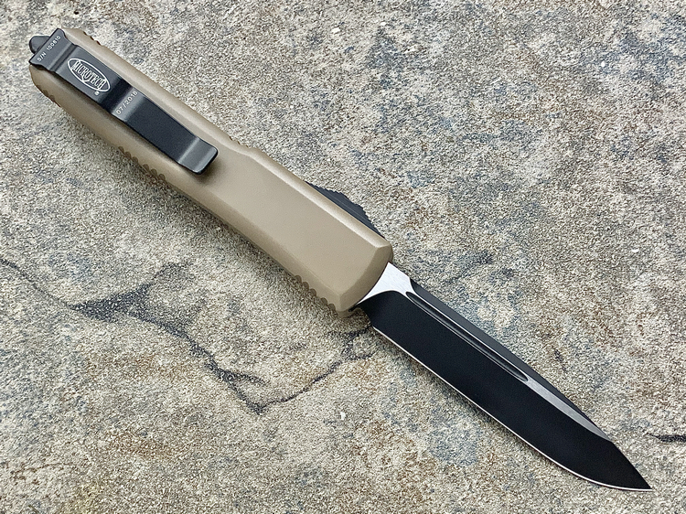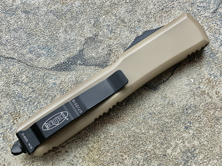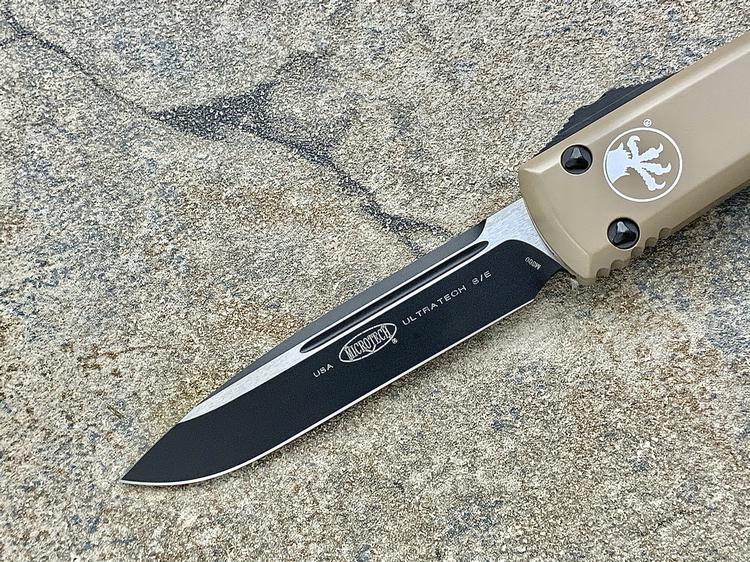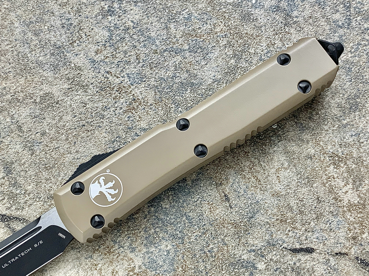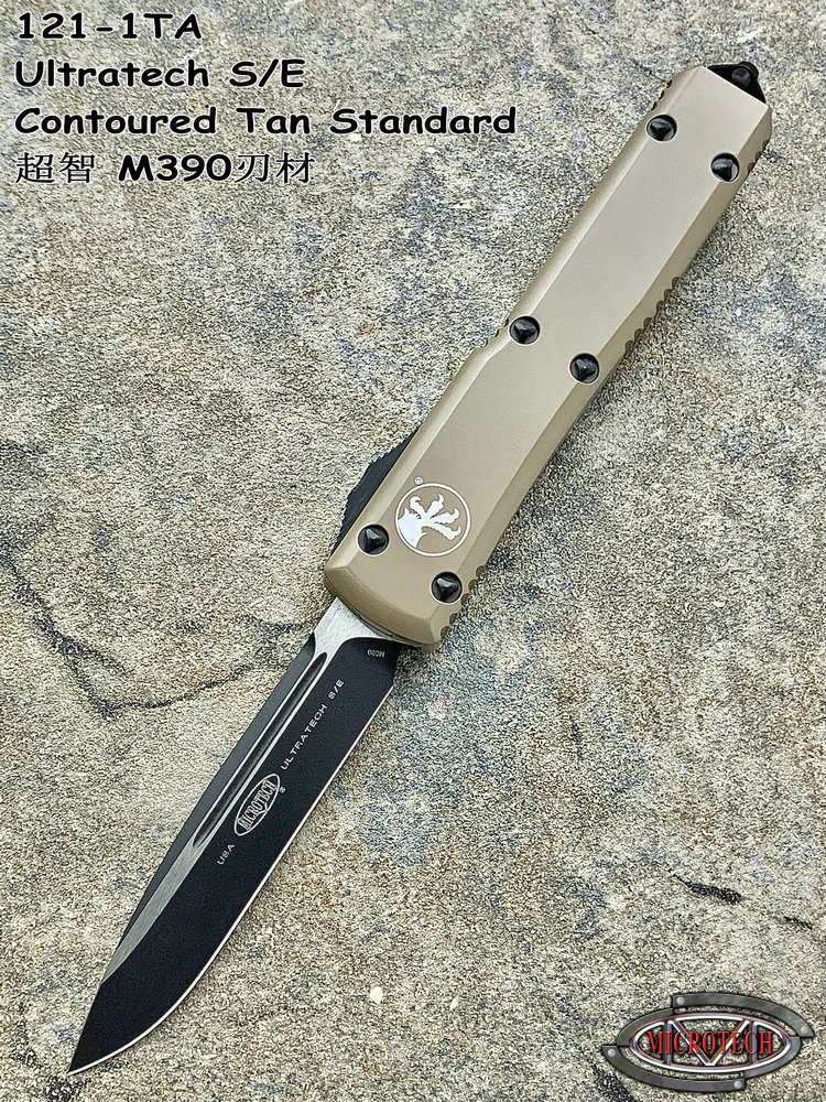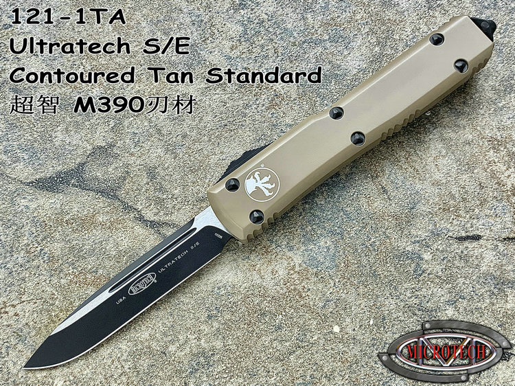 Microtech 微技术 121-1TA Ultratech S/E Contoured Tan Standard 超智 M390刃材 沙色柄 黑色水滴头经典直跳(暂无现货)