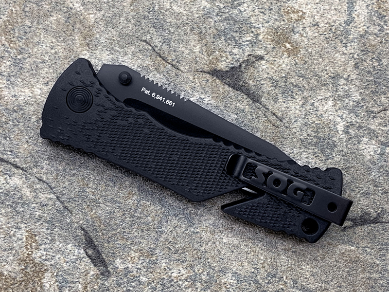 SOG三叉戟闪电战术折刀由首席工程师Spencer Frazer设计,结合采用S.A.T专利(SOG 协助技术)。使刀具开启速度更为迅捷,为你争得分分秒秒机遇。使用时轻推刀刃助力钮,尖锐的刀刃瞬间侧弹而出,高高昂起。刀头采用了类似AK军刺的刨削刀尖(Clip Point)设计。刀背曲线往下与刀尖相接,两线夹角自然生成锐利刀尖。有类似剑尖一般的刺戳能力,且有相当优良的砍劈效果。刀刃涂层采用优良的钛氮化合物覆盖保护,能完全消除反光并长久保持刀刃锋利。此外,SOG三叉戟闪电战术折刀有着良好的抓握能力。握持刀柄时您的大拇指、食指及无名指受力处皆有厚厚的齿状防滑纹,极好的承接手掌对刀具的压力,防止刀柄的偏移。配合其经典的轴锁保持刀刃弹启后纹丝不动,非一般的牢固。刀柄上亮眼的特色豁口切割设计是它的一大特色。使刀具即使在合拢时也可随时发挥功能,麻利的切割绳索及安全带。使您脱离险境。为预防在长期颠簸的行军途中刀具意外磕碰弹射打开,刀柄还附加刀具安全锁。在保存刀具时候将红色安全锁关上(拨向刀刃一侧即可),刀具就是在人为磕碰下都很安静、安全。牢牢的合拢在刀柄内待命。随刀配备有精制的可左右换装的“SOG”镂刻背夹。方便更多朋友来携带它,使用它。来更好的体验SOG三叉戟快速战术折刀的魅力。