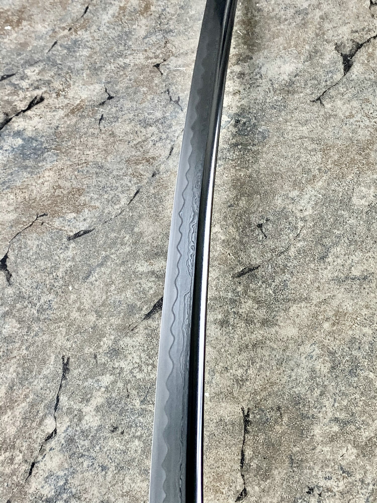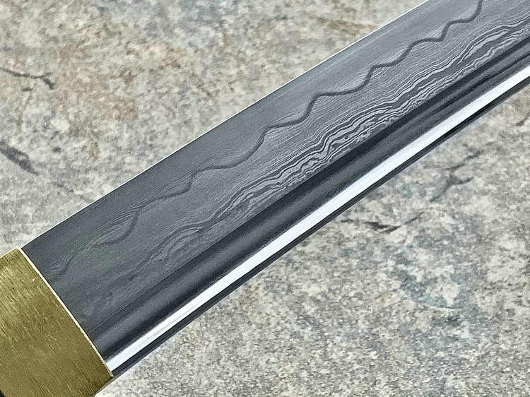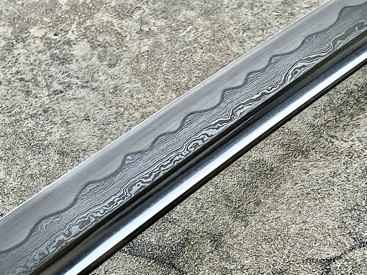 Cold Steel公司一直坚持使用传统材料来制造日本刀,护手(镡)和柄头(头)都用铁地铸成,而且做工考究。手柄上包裹的是真鲛皮,并且用黑线用传统十字交叉方式缠裹。大马士革覆土烧刃由经验丰富的职业刀匠手工锻造打磨,按照传统日本铸刀方法制造而成。每一把刀都配有一个黑色漆面木鞘。