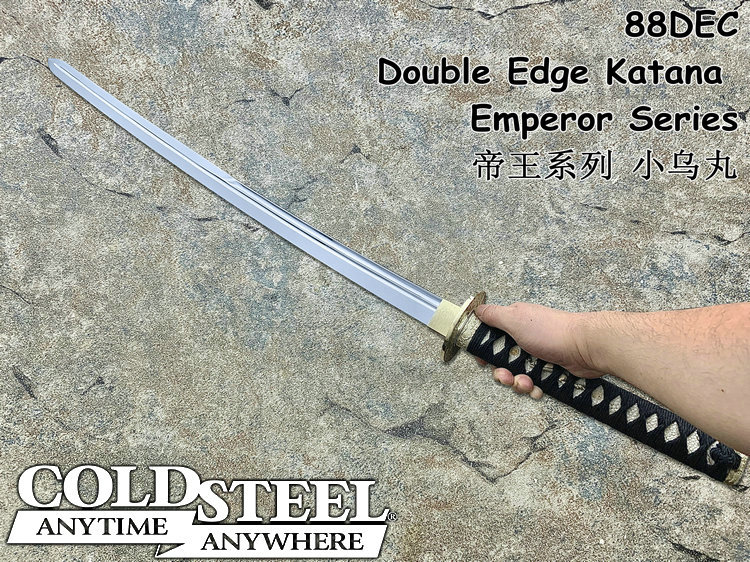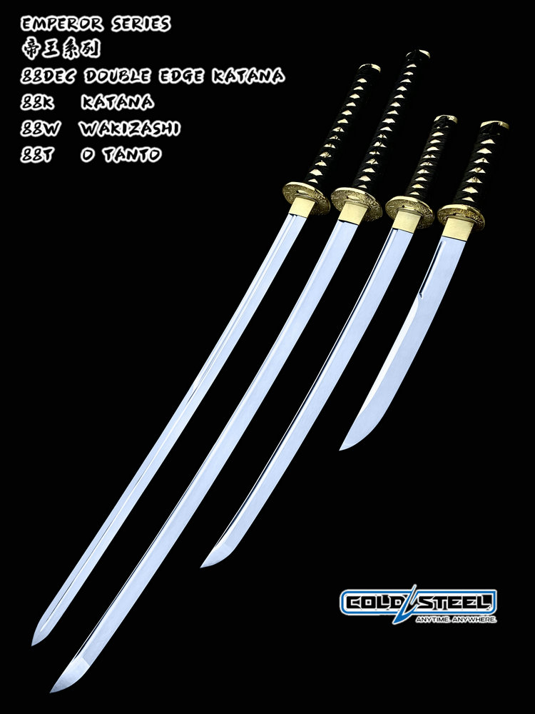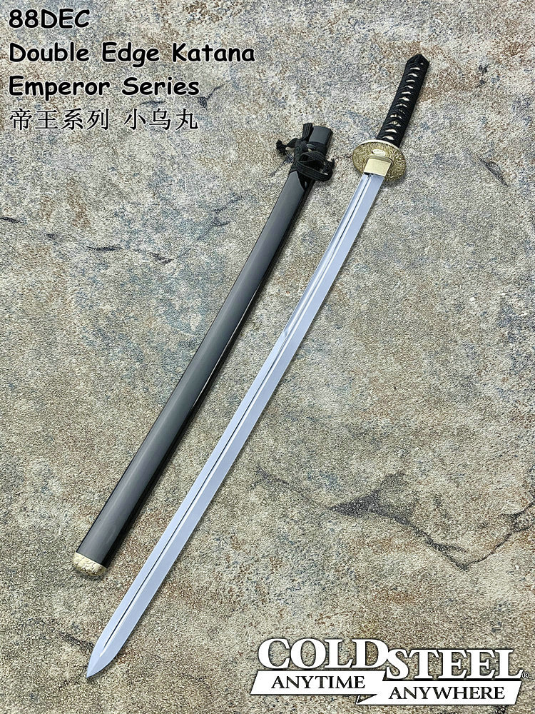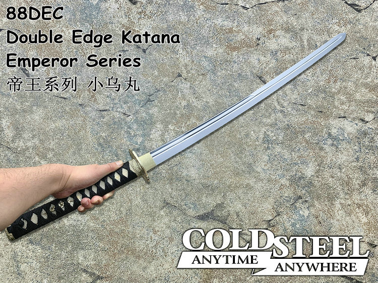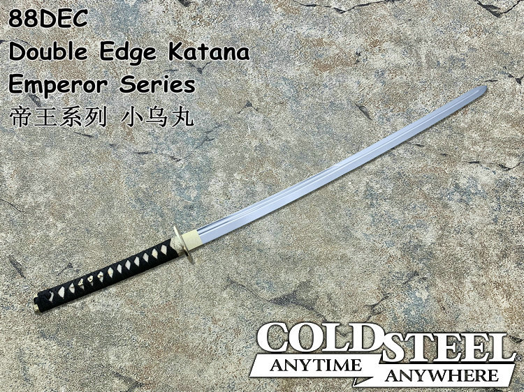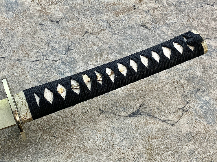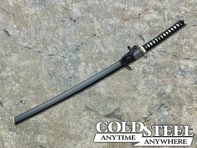 Cold Steel公司一直坚持使用传统材料来制造日本刀,护手(镡)和柄头(头)都用镍银铸成,而且做工考究。黄铜鞘口(鲤口)是用全手工制作抛光而成。手柄上包裹的是真鲛皮,并且用黑线用传统十字交叉方式缠裹。刀刃都用1060高碳钢,由经验丰富的职业刀匠手工锻造打磨,按照传统日本铸刀方法制造而成。每一把刀都配有一个黑色漆面木鞘。
