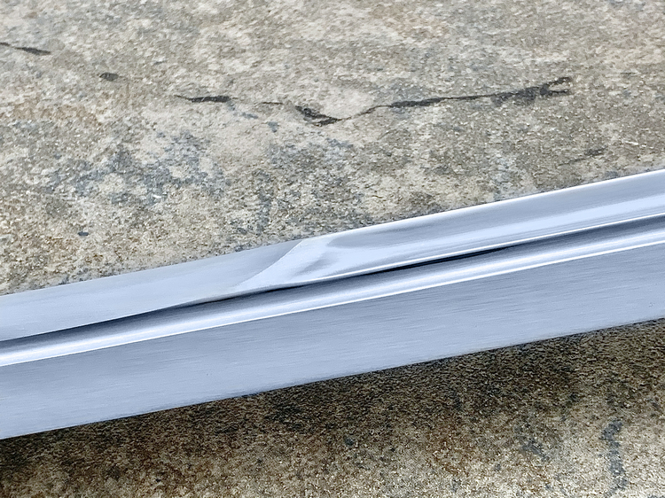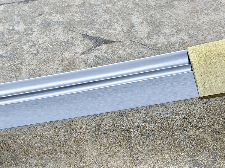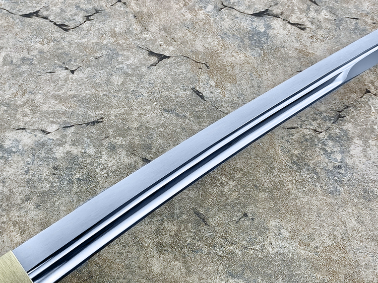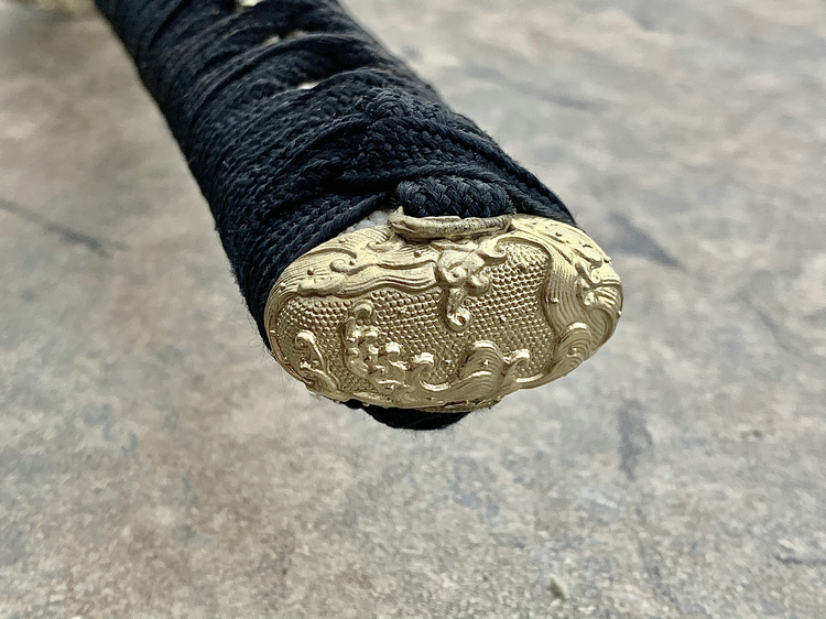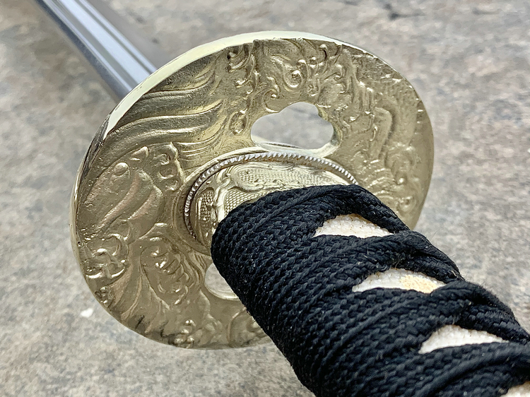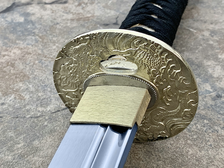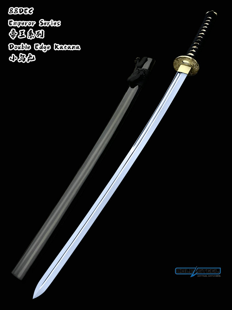 Cold Steel公司一直坚持使用传统材料来制造日本刀,护手(镡)和柄头(头)都用镍银铸成,而且做工考究。黄铜鞘口(鲤口)是用全手工制作抛光而成。手柄上包裹的是真鲛皮,并且用黑线用传统十字交叉方式缠裹。刀刃都用1060高碳钢,由经验丰富的职业刀匠手工锻造打磨,按照传统日本铸刀方法制造而成。每一把刀都配有一个黑色漆面木鞘。