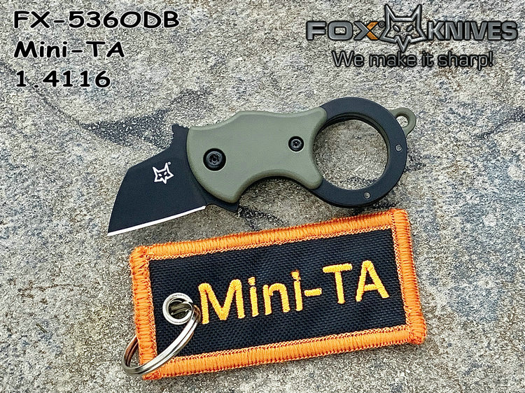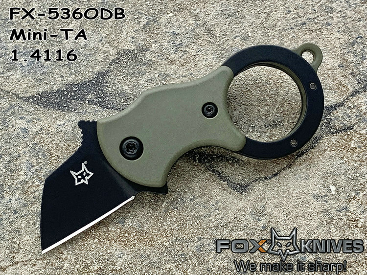 简单描述: FOX 意大利狐狸 FX-536ODB Mini-TA 1.4116刃材 军绿色FRN柄 指环爪刀